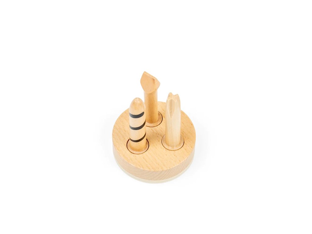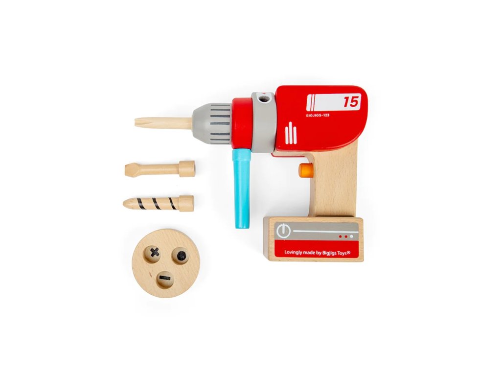 Dětská dřevěná vrtačka je zábavnou hračkou určenou pro děti, které zajímá svět řemesel. Má atraktivní design, který přitahuje dětskou pozornost. Začínající kutilové se mohou pustit do svého projektu s touto vrtačkou, když předstírají, že sestavují police nebo nábytek. Má vše, co byste očekávali od skutečné vrtačky, kromě elektřiny a ostrých částí. Tři dřevěné vrtáky a šrouby jsou magnetické a snadno se připevňují k hlavě vrtačky. Vrtačka se otáčí ručně. Má klikací tlačítko pro zapnutí/vypnutí. Vyrobeno z vysoce kvalitních, zodpovědně získaných materiálů. Hlavní vlastnosti: atraktivní designtlačítko vypnutí/zapnutíodnímatelná předstíraná bateriepodporuje dětskou kreativitu a rozvoj motorických dovednostíideálním doplňkem pro dětský stavební světpomáhá rozvíjet obratnost a koordinaci