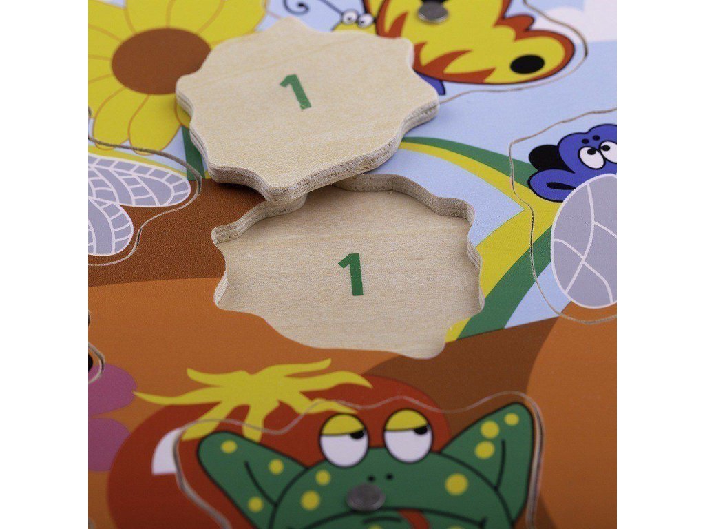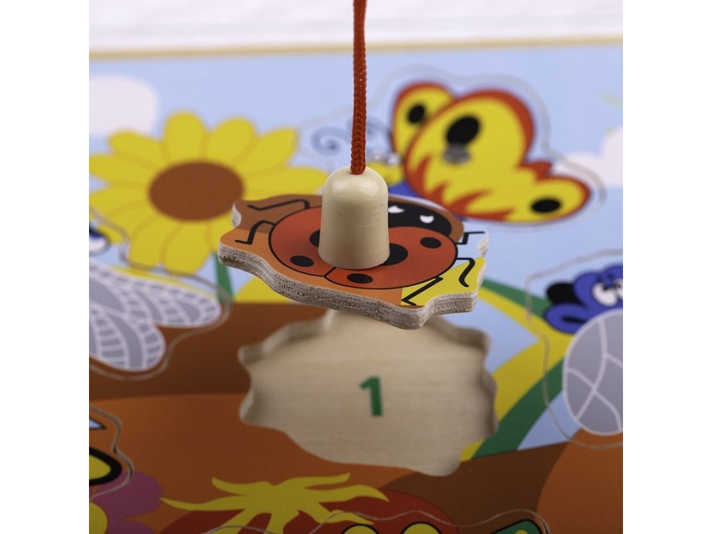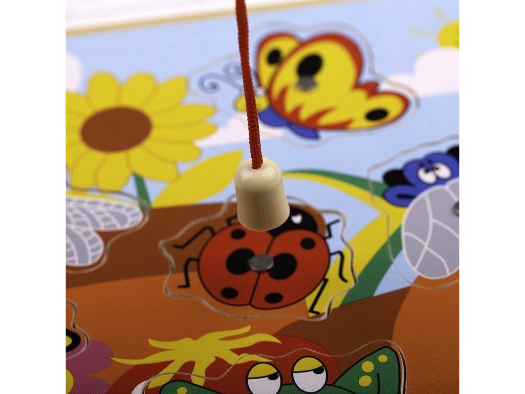 Kdo chytí jako první nejvíce hmyzu, vyhrává! Hra a puzzle v jednom s 10 odnímatelnými dílky a 2 magnetickými hůlkami. Po ulovení je nutno všechny díly vrátit zpět na jejich místo. Pod každým dílkem je také číslo, které Vám pomůže s bodováním. Hru můžete také použít k učení se o různých typech hmyzu, mladí umělci mohou dílky použít k obkreslování. Tato zábavná hra je ideální k brzkému naučení se počítání a čísel, zručnosti, koordinace ruka-oko. Vyrobeno z kvalitních materiálů z odpovědných zdrojů. Odpovídá evropské bezpečnostní normě. Hlavní vlastnosti: hra na rybaření a puzzleobsahuje 13 dílůrozvíjí koordinaci ruka-oko, motoriku a zručnost