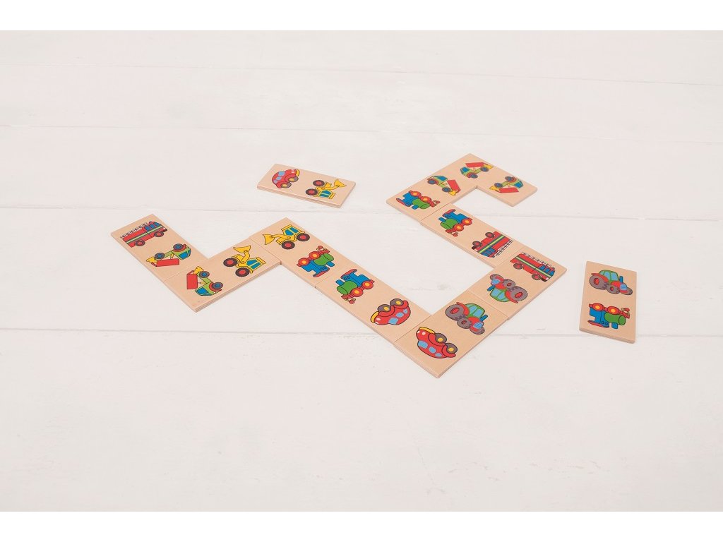 Toto pestrobarevné dřevěné domino je ideální svou velikostí pro dětské ručičky. Nadčasová hra, která si během let jistě najde mnoho využití a děti si s ní užjí mnoho zábavy. Všechny dílky lze uložit do dřevěné krabičky s posuvným víkem. Pomáhá rozvíjet obratnost, schopnosti porovnávání a soustředění. Vyrobeno z vysoce kvalitních a zodpovědně získaných materiálů. Odpovídá současným evropským bezpečnostním normám. Obsahuje 28 ks dílků domina. Hlavní vlastnosti: veselý a jednoduchý motiv dopravních prostředkůrozvíjí senzomotorické schopnosti dětí obsahuje 28 dílků, které lze uložit do krabičky s posuvným víkem