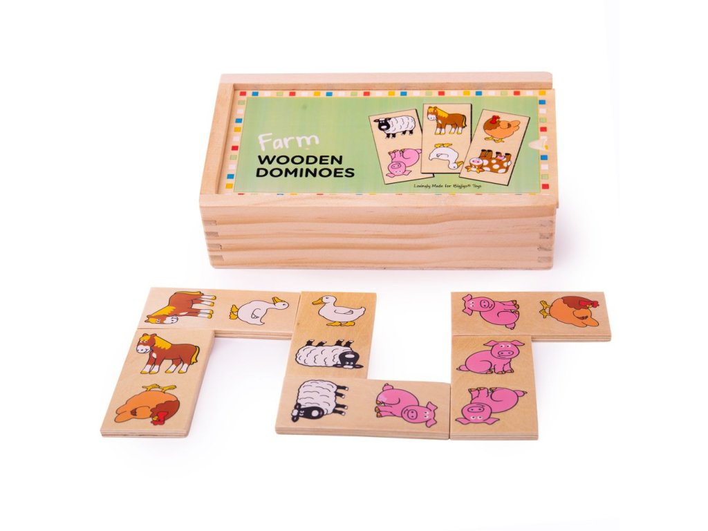 Toto pestrobarevné dřevěné domino je ideální svou velikostí pro dětské ručičky. Nadčasová hra, která si během let jistě najde mnoho využití a děti si s ní užjí mnoho zábavy. Všechny dílky lze uložit do dřevěné krabičky s posuvným víkem. Pomáhá rozvíjet obratnost, schopnosti porovnávání a soustředění. Vyrobeno z vysoce kvalitních a zodpovědně získaných materiálů. Odpovídá současným evropským bezpečnostním normám. Obsahuje 28 ks dílků domina. Hlavní vlastnosti: veselý a jednoduchý motiv zvířátek z farmyrozvíjí senzomotorické schopnosti dětíobsahuje 28 dílků, které lze uložit do krabičky s posuvným víkem