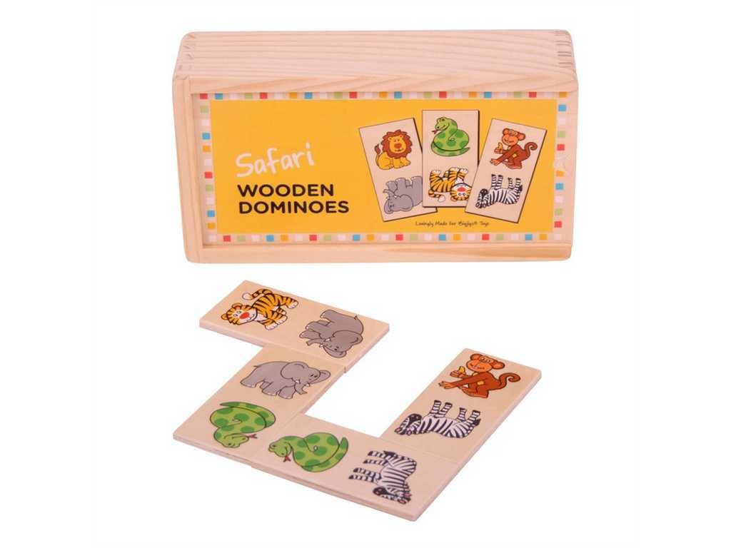 Toto pestrobarevné dřevěné domino je svou velikostí ideální pro dětské ručičky. Nadčasová hra, která si během let jistě najde mnoho využití a děti si s ní užijí mnoho zábavy. Všechny dílky lze uložit do dřevěné krabičky s posuvným víkem. Pomáhá rozvíjet zručnost, umění porovnávání a soustředění. Vyrobeno z vysoce kvalitních a zodpovědně získaných materiálů. Odpovídá současným evropským bezpečnostním normám. Obsahuje 28 ks dílků domina. Hlavní vlastnosti: veselý a jednoduchý motiv safarirozvíjí senzomotorické schopnosti dětíobsahuje 28 dílků, které lze uložit do krabičky s posuvným víkem
