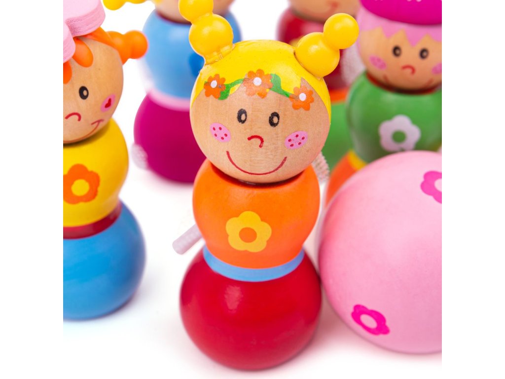 Tyto pestrobarevné dřevěné pohádkové kuželky se rády převrhnou, narovnají a pak znovu převrhnou! Tato klasická dřevěná hračka, vyrobená ze dřeva, je skvělá pro hraní mezi rodinou nebo přáteli. Kuželky lze hrát na stole, podlaze, uvnitř i venku. Dřevěné kuželky pomáhají rozvíjet obratnost a koordinaci. Vyrobeno z vysoce kvalitních, zodpovědně získaných materiálů. Splňuje aktuální evropské bezpečnostní normy. Skládá se ze 7 hracích prvků. 7dílná hrací sada kuželek obsahuje 6 dřevěných víl a 1 dřevěnou bowlingovou kouli. Hlavní vlastnosti: 6x dřevěné pohádkové kuželky a 1 bowlingová koulevyrobeno z kvalitního dřevahra pomáhá rozvíjet obratnost a koordinaci