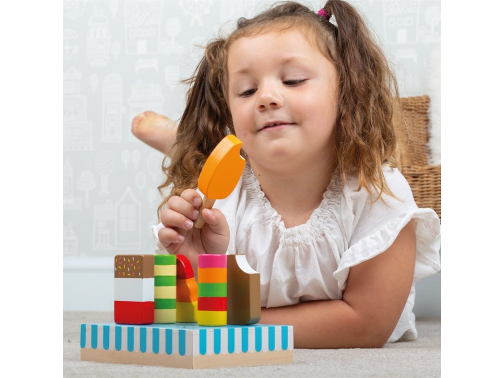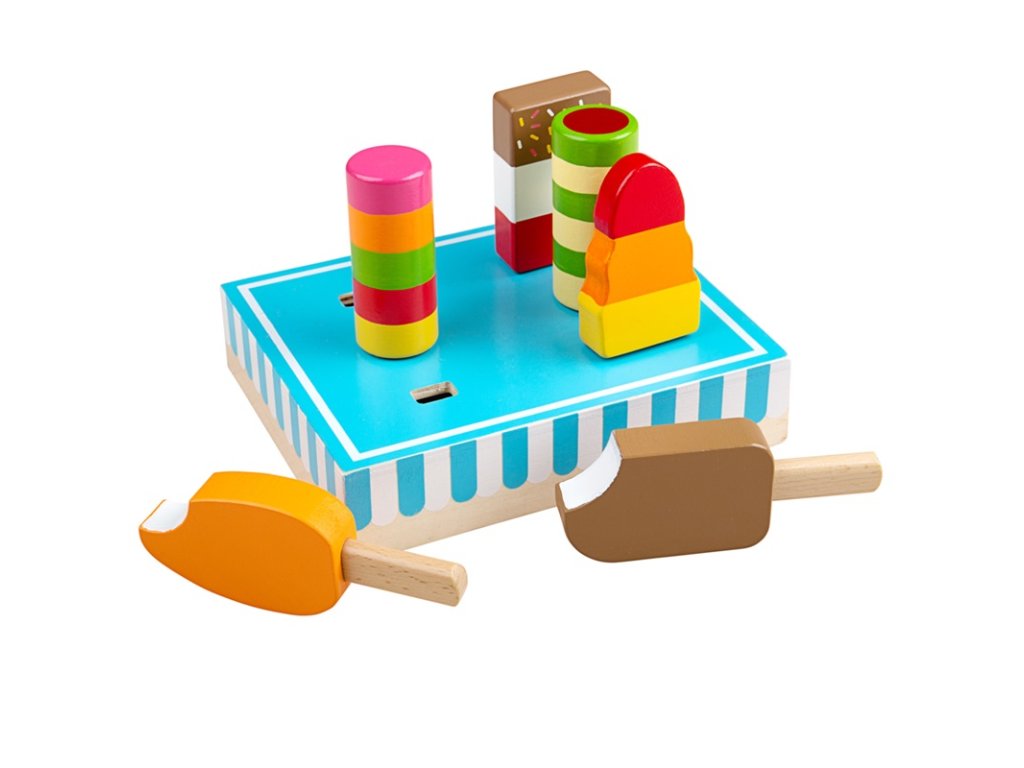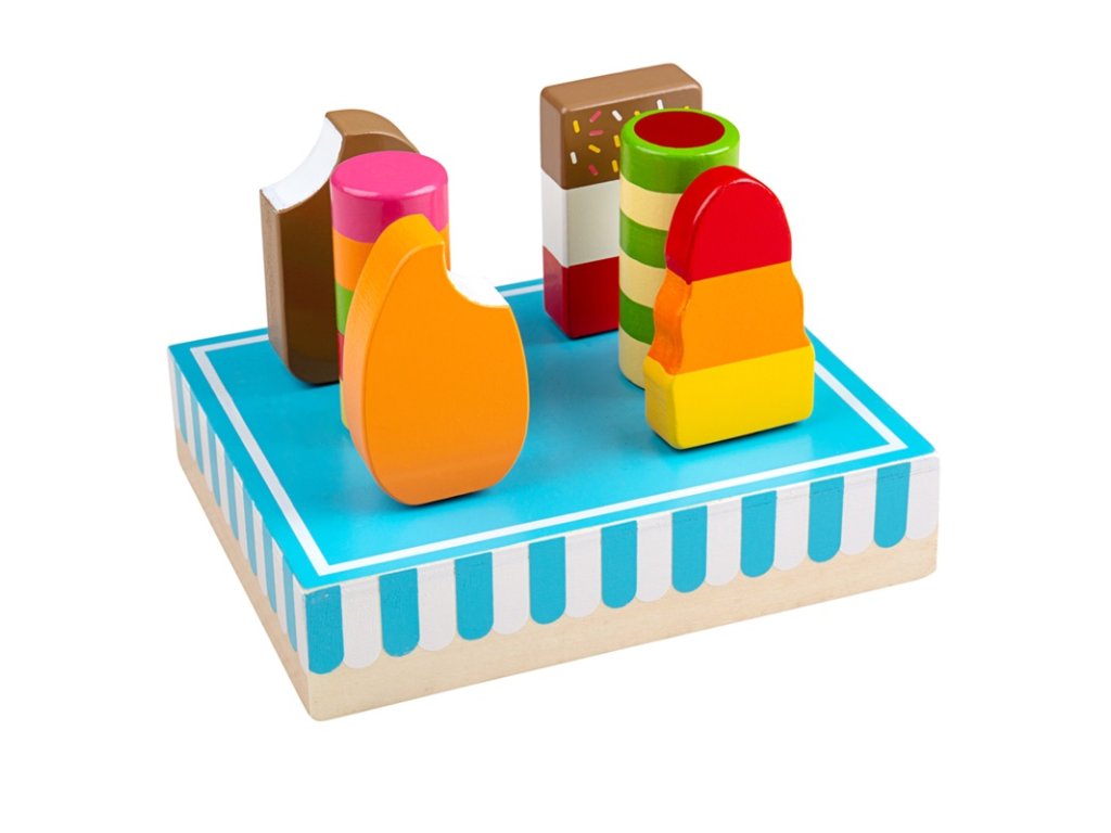 Zůstaň v pohodě s jedním z těchto lahodných nanuků. Kolik jich je, umíš je spočítat? Který je tvůj oblíbený? Nanuky na špejli se dají dekorativně aranžovat do připravených otvorů ve stojanu. Prostě “cool” doplněk pro dětské kuchyně a do obchůdku. Hlavní vlastnosti: skvělý způsob, jak podpořit kreativní a nápadité hraní vyrobeno z vysoce kvalitních, zodpovědně získaných materiálůsplňuje aktuální evropské bezpečnostní normy