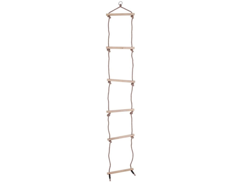 Tento odolný, tradiční provazový žebřík je ideální pro pomoc dětem rozvíjet jejich rovnováhu a lezecké dovednosti. Může být použit venku nebo uvnitř a má robustní dřevěné příčky. Skvělé pro zábavu a aktivní hraní. Vyrobeno z vysoce kvalitních, zodpovědně získaných materiálů. Splňuje aktuální evropské bezpečnostní normy. Při používání tohoto výrobku se doporučuje, aby děti všech věkových kategorií byly pod dohledem odpovědné dospělé osoby. Hmotnostní limit: 60 kg. Hlavní vlastnosti: příčky jsou spojeny pevným lanemnosnost 60kg
