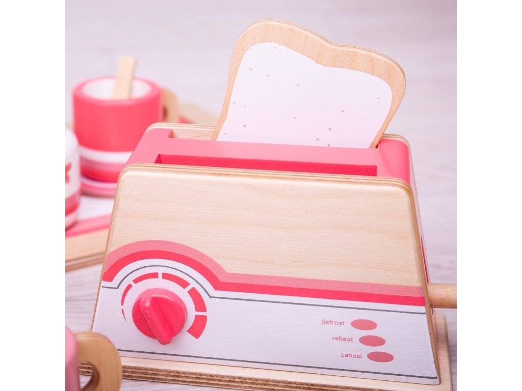 Je čas na tousty s dřevěným toustovačem Bigjigs Toys, skvělým doplňkem do každé dřevěné kuchyňky. Vložte dřevěné plátky chleba do štěrbinového toustovače a poté nastavte volič na preferované nastavení. Ať už to vaše ratolest má rádo lehce opečené nebo dobře propečené, existuje nastavení, které bude vyhovovat každému. Po opečení vytáhněte: Hlavní vlastnosti: podporuje kreativní a nápadité hranívyrobeno z vysoce kvalitních, zodpovědně získaných materiálůsplňuje aktuální evropské bezpečnostní normy
