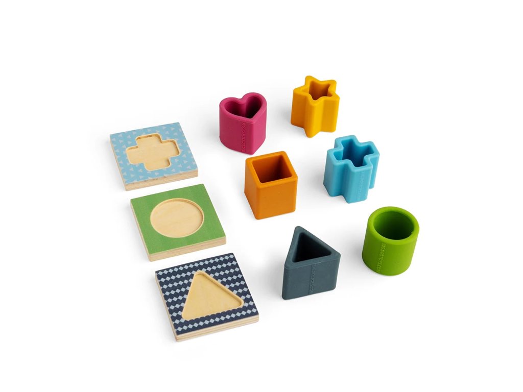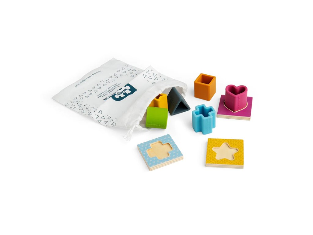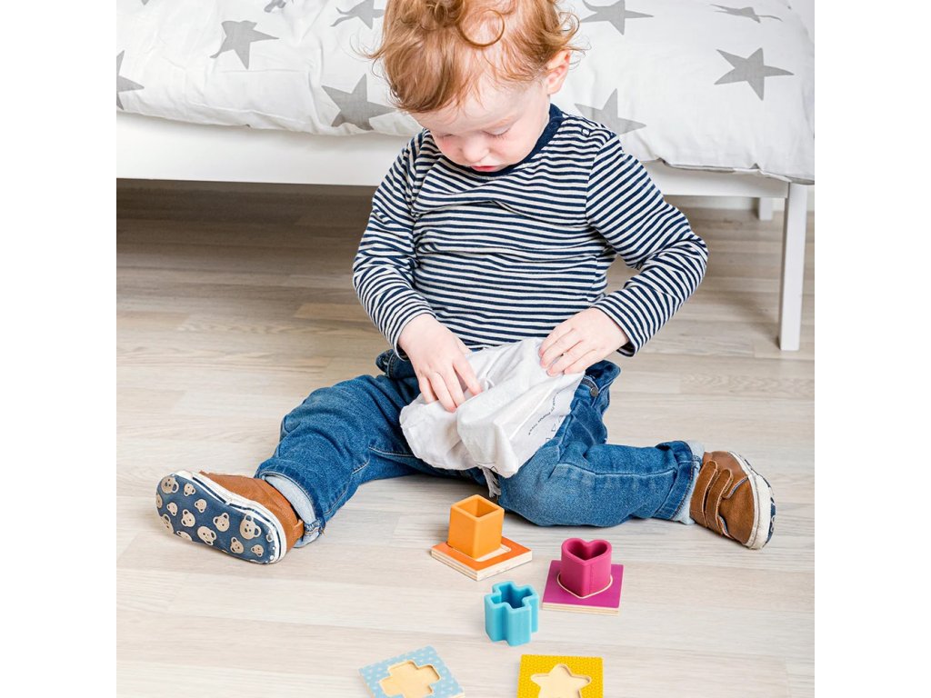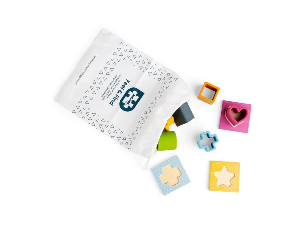 Co je v pytlíku? Nadchněte děti touto netradiční motorickou hrou. Hmatej a najdi je kombinací vkládačky a pexesa. Obsahuje šest silikonových tvarů a tři oboustranné podložky s výřezy pro tyto tvary. Dětem pomůže s rozvojem jemné motoriky, logického myšlení a koordinace ruka-oko.Vyrobeno ze 100% potravinářského silikonu a udržitelného FSC® certifikovaného dřeva, malováno netoxickými barvami a laky. Odpovídá evropským bezpečnostním standardům. Hlavní vlastnosti: udržitelné materiály9 dílkůvyrobeno ze 100% silikonu a FSC® certifikovaného dřevavhodné od 12 měsíců Značka a certifikát FSC® (Forest Stewardship Council) zaručuje, že dřevo, ze kterého byl produkt vyroben, nebylo vytěženo nelegálně a pochází z lesů obhospodařovaných šetrným či přírodě blízkým způsobem, ve kterém jsou dodržovány přísné environmentální a sociální požadavky. Značka FSC® na výrobku znamená, že svým nákupem pomáháte chránit lesy a podporujete šetrné, odpovědné či přírodě blízké hospodaření, díky kterému jsou naše lesy stabilnější, zdravější, mají přirozenou druhovou skladbu a lépe odolávají negativním následkům klimatických změn.