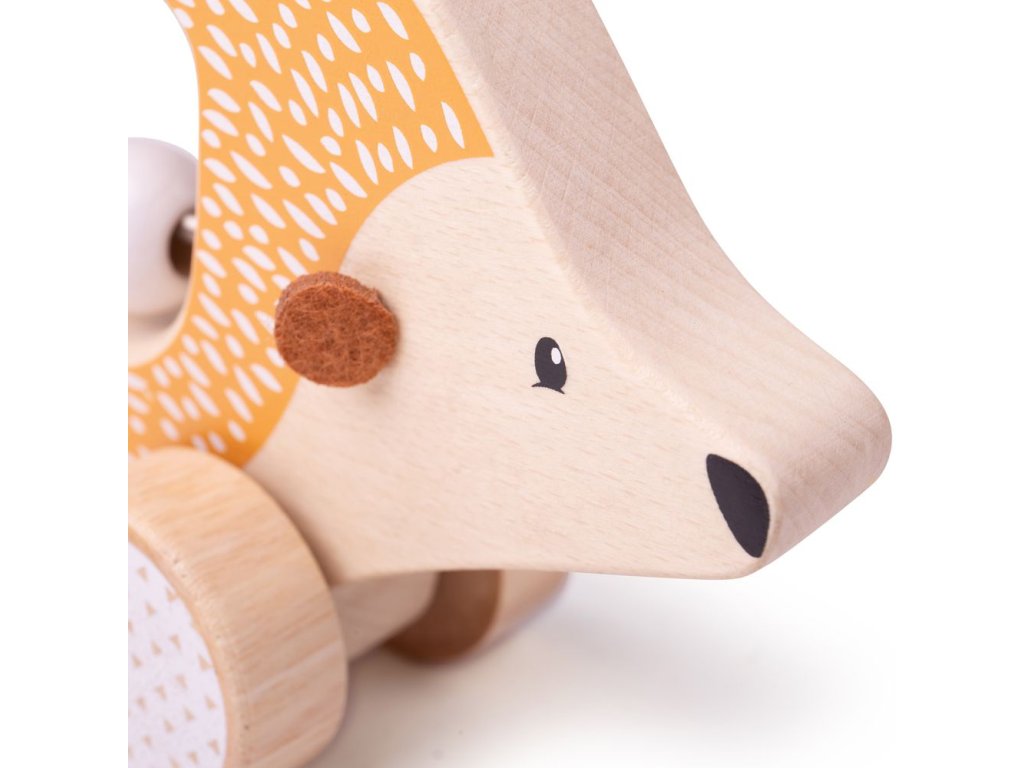 To je ale roztomilý ježek. Tato hračka na kolečkách dětem pomůže s rozvojem jemné motoriky. Ježek je dřevěný, má plstěná ouška a kovovou středovou tyč, na které jsou 3 korálky. Probudí smysly vašich dětí! Hlavní vlastnosti 100% FSC® dřevobarvy bezpečné pro dětijezdí a chrastí Značka a certifikát FSC® (Forest Stewardship Council) zaručuje, že dřevo, ze kterého byl produkt vyroben, nebylo vytěženo nelegálně a pochází z lesů obhospodařovaných šetrným či přírodě blízkým způsobem, ve kterém jsou dodržovány přísné environmentální a sociální požadavky. Značka FSC® na výrobku znamená, že svým nákupem pomáháte chránit lesy a podporujete šetrné, odpovědné či přírodě blízké hospodaření, díky kterému jsou naše lesy stabilnější, zdravější, mají přirozenou druhovou skladbu a lépe odolávají negativním následkům klimatických změn.
