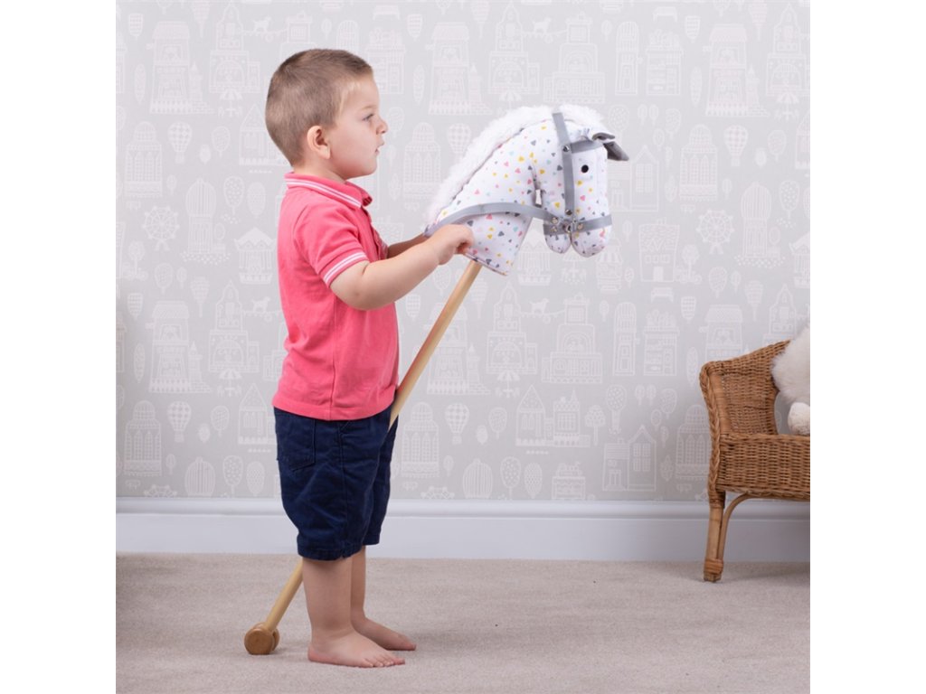 Cváláme, koníčku! Osedlejte si rozkošného koníčka s květinovým vzorem na hodiny aktivní zábavy. Koníci na tyči jsou skvělým způsobem, jak podpořit pohybovou aktivitu a cvičení, když malé nožičky cválají po herně nebo na zahradě. Tento rozkošný dřevěný koníček se vyznačuje měkkou plyšovou hlavou, nadýchanou hřívou, praktickými otěžemi, snadno uchopitelnými rukojeťmi, kolečky na konci tyče a pevnou konstrukcí. Lesklá dřevěná kolečka nezanechávají stopy na podlaze a kloužou po hladkém rovném povrchu.Vyrobeno z vysoce kvalitních materiálů z odpovědných zdrojů . Splňuje aktuální evropské bezpečnostní normy. Hlavní vlastnosti: snadno uchopitelné rukojetidvě dřevěná kola na konci tyče, které kloužou po pevných podlaháchměkká plyšová hlavapodporuje pohybovou aktivituvyrobeno z vysoce kvalitních, zodpovědně získaných materiálů