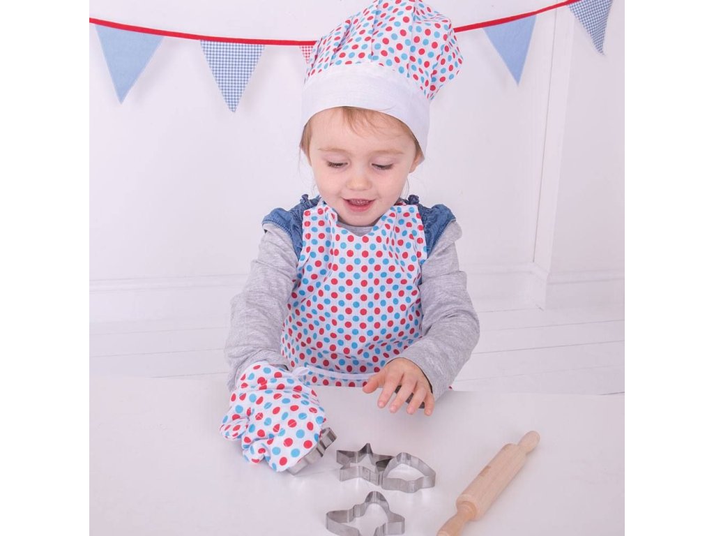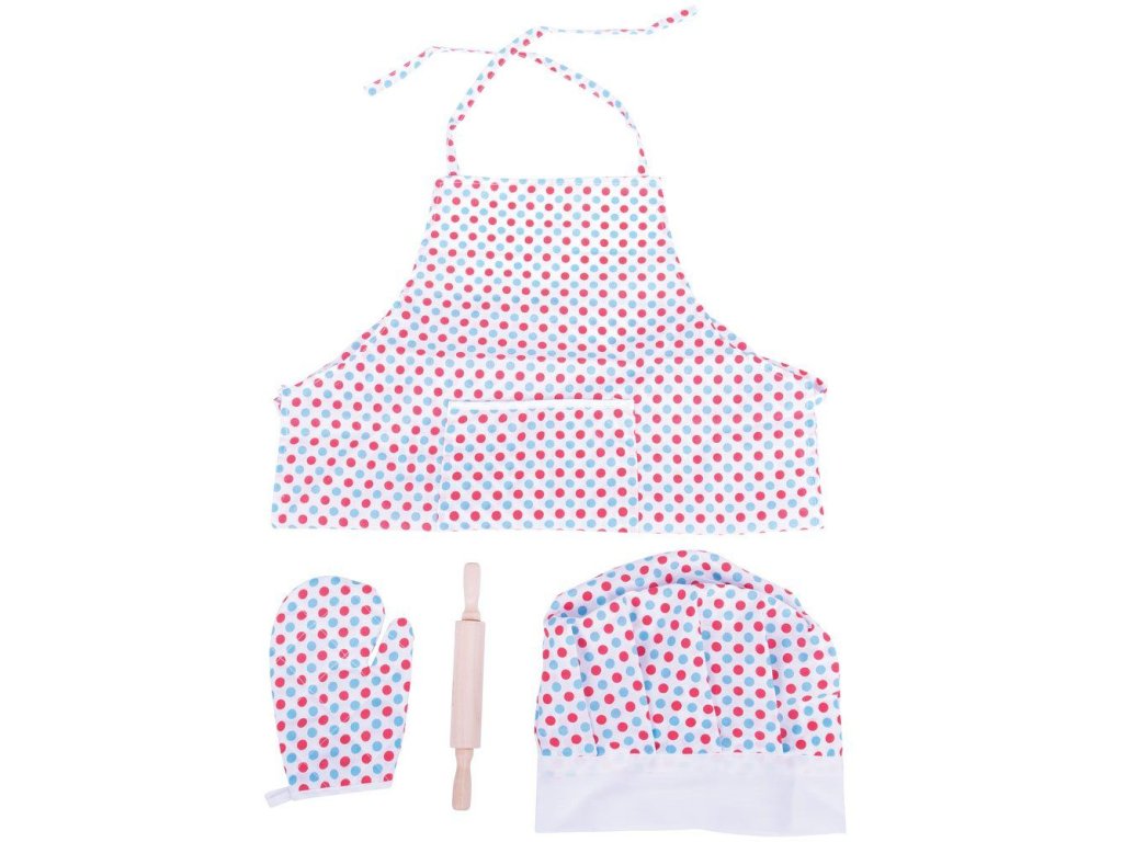 Bigjigs Toys Kuchařský set se zástěrou s puntíky