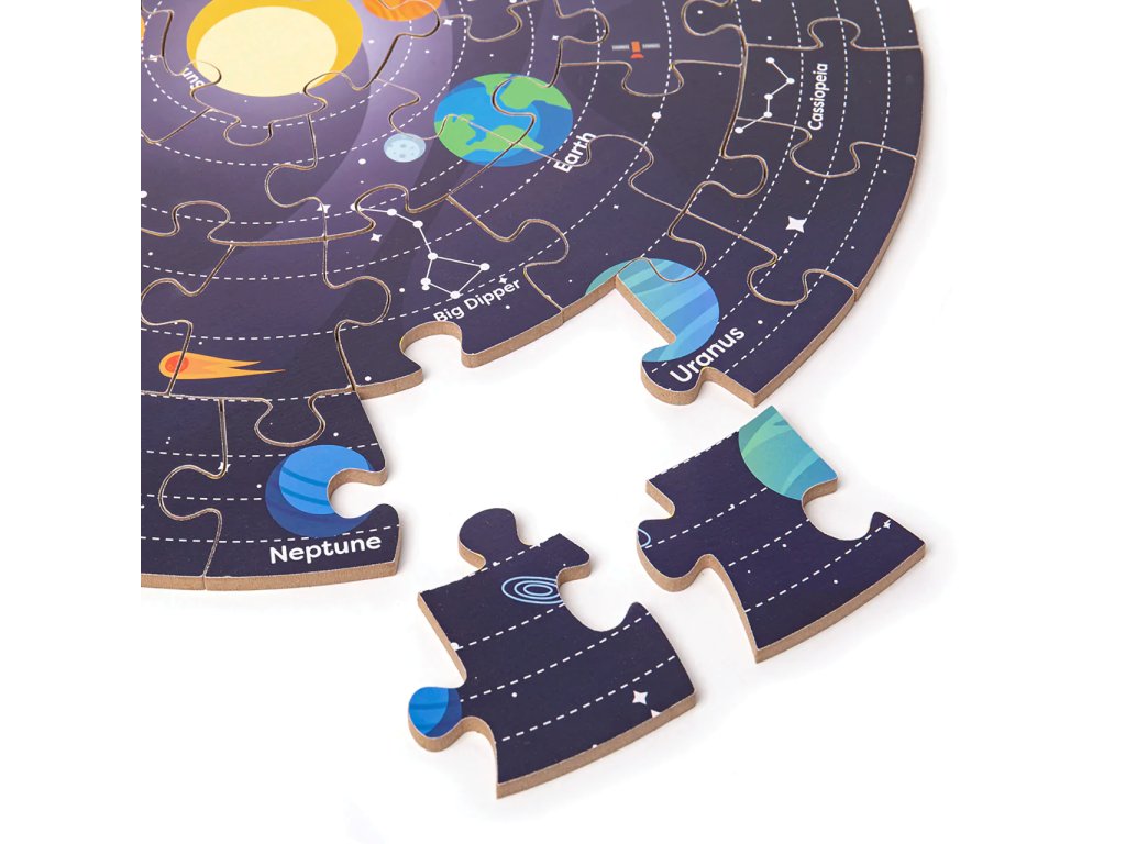 Naučte se vše o planetách a hvězdách v naší sluneční soustavě pomocí tohoto 50 dílkového puzzle, které bylo pečlivě vytvořeno a navrženo tak, aby zaujalo. Spojte všechny dílky dohromady a vytvořte nádhernou 360 stupňovou scénu a objevujte hvězdy planety a jiná tělesa ve vesmíru. Vyrobeno z vysoce kvalitních a zodpovědně pocházejících materiálů. Vyhovuje současným evropským bezpečnostním normám. Hlavní vlastnosti: 50 dílků scéna sluneční soustavy
