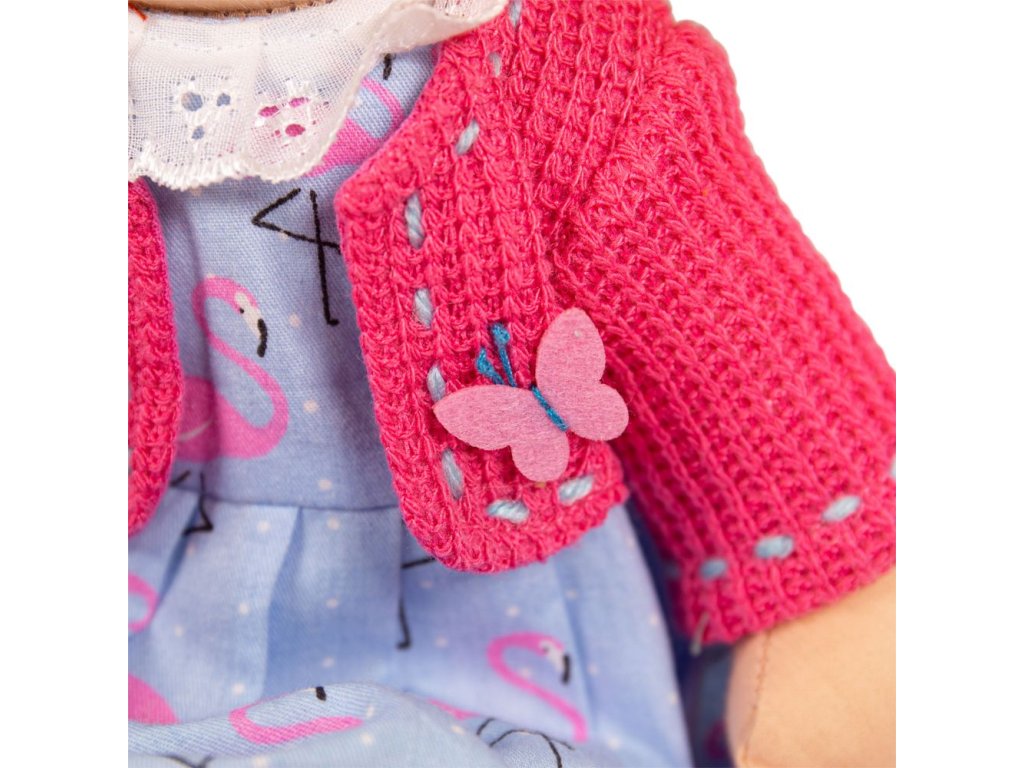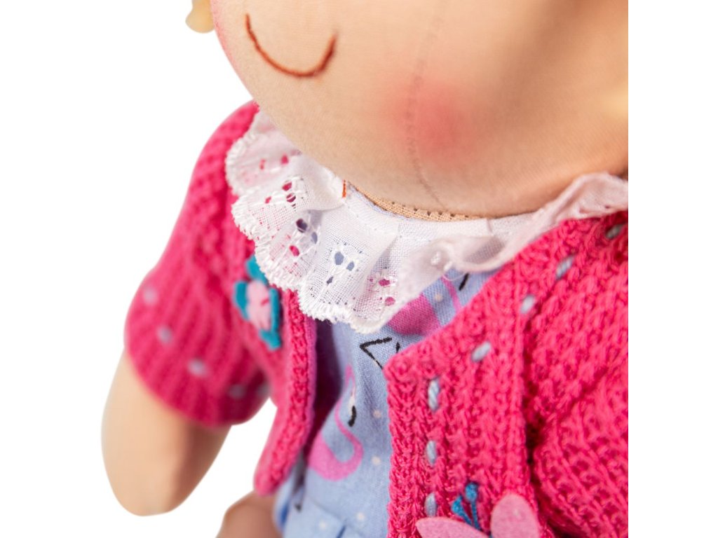 Seznamte se s Maggie! Tato měkká a mazlivá látková panenka jen čeká na lásku a přátelství svého nového nejlepšího přítele či přítelkyně. Její krásný outfit se skládá z modrých šatů se vzorem růžových plameňáků a růžového bolerka. Svým milým úsměvem si jistě získá srdce dítěte na první pohled. Vyrobeno z kvalitních materiálů z odpovědných zdrojů. Odpovídá evropské bezpečnostní normě. Hlavní vlastnosti: bezpečné měkké tělíčkohra s panenkou rozvíjí jemnou motoriku a schopnost pomáhat, pečovatk panence Bigjigs Toys lze dokupovat oblečení v příslušné velikostivhodné již od narozeníodpovídá současným evropským bezpečnostním normám