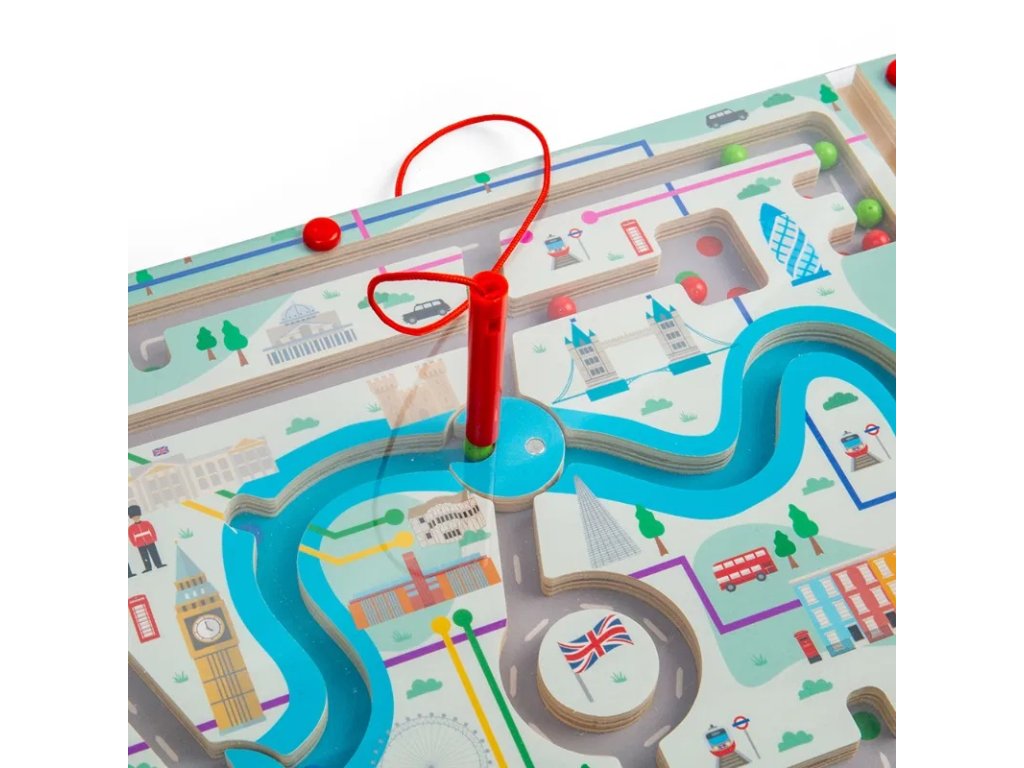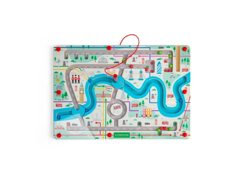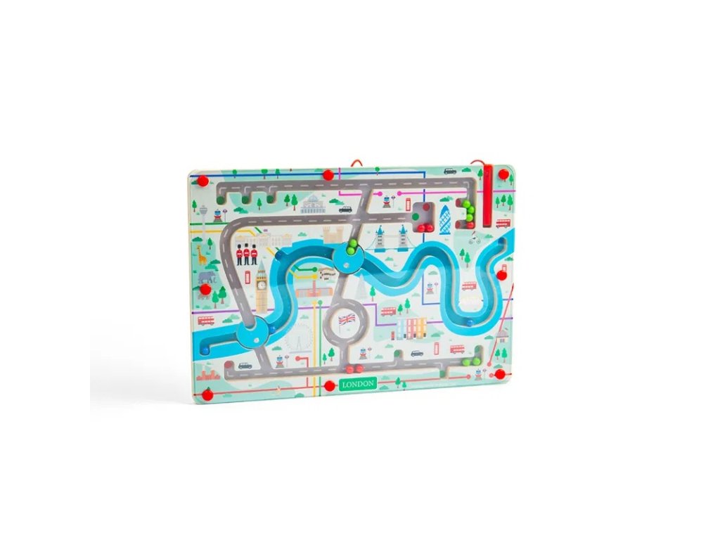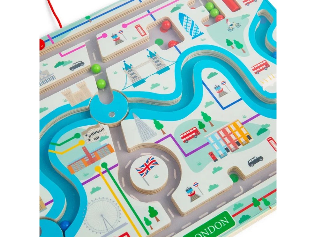 Vydejte se na projížďku rušnými ulicemi Londýna s magnetickým bludištěm! Pomocí červeného magnetického pera mohou děti vést 15 magnetických kuliček bludištěm. Poznají ikonické památky, jako je Buckinghamský palác, London Eye a Tower Bridge, nebo se mohou vydat na projížďku po řece Temži a otáčením magnetických koleček přepínat, kudy budou pokračovat dál. Každé otočení kolečka a výběr další cesty pomůže dětem pracovat na jejich schopnostech řešit problémy a dostat se do požadovaného cíle. Použití magnetického pera také zlepší zručnost a koordinaci ruka-oko a soustředění. Magnetické bludiště je vyrobeno z prvotřídního a udržitelného dřeva s certifikací FSC® a nabarveno netoxickými barvami a laky. Splňuje aktuální evropské bezpečnostní normy. Hlavní vlastnosti: zlepšuje jemnou motoriku a koordinaci ruka-okoučí děti řešit problémyvyrobeno ze dřeva s certifikací FSC®vhodné od 3 let věku Značka a certifikát FSC® (Forest Stewardship Council) zaručuje, že dřevo, ze kterého byl produkt vyroben, nebylo vytěženo nelegálně a pochází z lesů obhospodařovaných šetrným či přírodě blízkým způsobem, ve kterém jsou dodržovány přísné environmentální a sociální požadavky. Značka FSC® na výrobku znamená, že svým nákupem pomáháte chránit lesy a podporujete šetrné, odpovědné či přírodě blízké hospodaření, díky kterému jsou naše lesy stabilnější, zdravější, mají přirozenou druhovou skladbu a lépe odolávají negativním následkům klimatických změn.