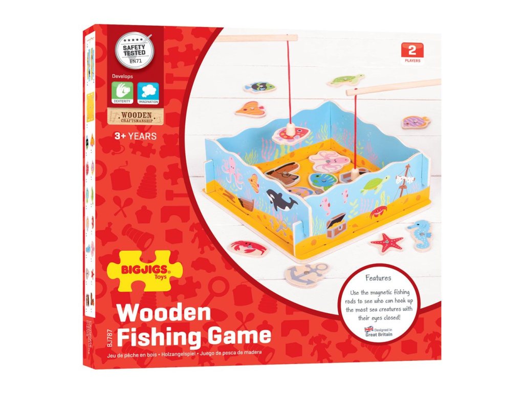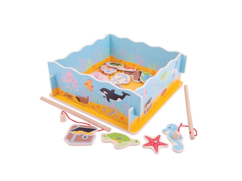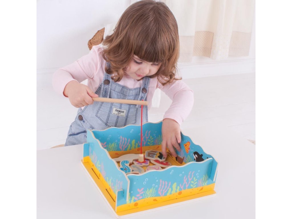 Popadněte svůj rybářský prut a užijte si tuto hru! Hra vyžaduje dovednost a koncentraci, protože každou rybu je třeba umístit zpět do správného otvoru. Pomáhá rozvíjet obratnost a koordinaci. Vyrobeno z vysoce kvalitních materiálů z odpovědných zdrojů. Vyhovuje současným evropským bezpečnostním normám. Součástí balení je 11 rybek, jedna truhla s pokladem, jedna bota a jedna kotva + konstrukce moře s dvěma pruty. Hlavní vlastnosti: rozvíjí zručnost a koordinaciobsahuje 11 rybiček, 1 truhlu s pokladem, 1 botu, 1 kotvu, 2 pruty a konstrukci moře
