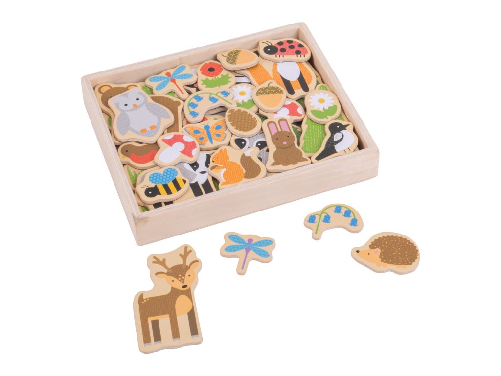 Tyto barevné magnetky s lesními zvířátky jsou vyrobeny ze dřeva, zadní strana je magnetická. Podpoří děti v kreativním vyprávění vlastních příběhů. Tato sada obsahuje 35 ks magnetů – zvířátka, stromy, květiny a další! Ideální jako doplněk k magnetickým tabulím nebo jako dekorace lednice. Zabaleno v pevné dřevěné krabičce. Hračka pomáhá s rozvojem zručnosti a soustředění. Vyrobeno z kvalitních materiálů z odpovědných zdrojů. Odpovídá evropským bezpečnostním standardům. Hlavní vlastnosti: lze využít k magnetickým tabulím nebo vykouzlí zajímavé obrázky na lednicibaleno v dřevěné krabičce. Pomáhají rozvíjet obratnost a koncentracivyrobeno z vysoce kvalitních materiálůodpovídá současným evropským bezpečnostním normám
