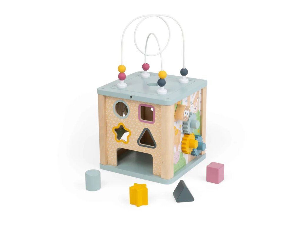Děti se s touto motorickou kostkou zabaví na celé hodiny! Každá ze čtyř stran je plná hry, nadšení, zábavy. Tato rozmanitá motorická kostka je vyrobena ze stabilního 100% FSC® dřeva, najdete na ní například: vkládačku, kuličkovou dráhu, ozubená kolečka a další! Kombinace přírodního dřeva a jemných pastelových barev dělá tuto hračku perfektní pro chlapce i děvčata. Dřevěná motorická kostka dětem pomůže s rozvojem sociálních dovedností, komunikace, rozpoznávání čísel. Hračka byla vyrobena eticky z FSC certifikovaných materiálů. Jejich kvalita zaručuje dlouhou životnost kostky. Hlavní vlastnosti: 100% FSC® dřevobarevné a přírodní dřevomotorická hračkana každé straně jiná hrapodporuje vývoj sociální, jazykovýlak bezpečný pro děti Značka a certifikát FSC® (Forest Stewardship Council) zaručuje, že dřevo, ze kterého byl produkt vyroben, nebylo vytěženo nelegálně a pochází z lesů obhospodařovaných šetrným či přírodě blízkým způsobem, ve kterém jsou dodržovány přísné environmentální a sociální požadavky. Značka FSC® na výrobku znamená, že svým nákupem pomáháte chránit lesy a podporujete šetrné, odpovědné či přírodě blízké hospodaření, díky kterému jsou naše lesy stabilnější, zdravější, mají přirozenou druhovou skladbu a lépe odolávají negativním následkům klimatických změn.