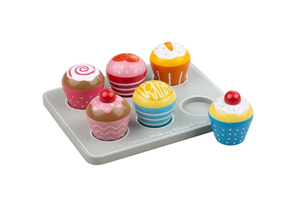 Šest lahodných dřevěných muffinů s podnosem připravených k ozdobení jakékoliv dřevěné kuchyně, hraní si na obchod nebo pro čajovou párty. Každý je pestře zbarvený a individuálně ozdobený. Muffiny jsou připraveny k servírování, jakmile jsou v dřevěném podstavci úhledně zasunuty! BigJigs je velký fanoušek zdravé výživy a jaká by byla lepší cesta učit děti o zdravé výživě, než pomocí hraček z našeho sortimentu? Dřevěné hrací jídlo je ideální k tomu, aby se vaše dítě dozvědělo o důležitosti zdravé a vyvážené stravy. A také o tom, odkud naše jídlo pochází a jak ho připravujeme. Hlavní vlastnosti: dodáván s podnosem na muffinyskvělé pro každého mladého šéfkuchařerozvíjí sociální dovednosti, obratnost, představivost a kreativituvyrobeno z vysoce kvalitních, zodpovědně získaných materiálůsplňuje aktuální evropské bezpečnostní normy