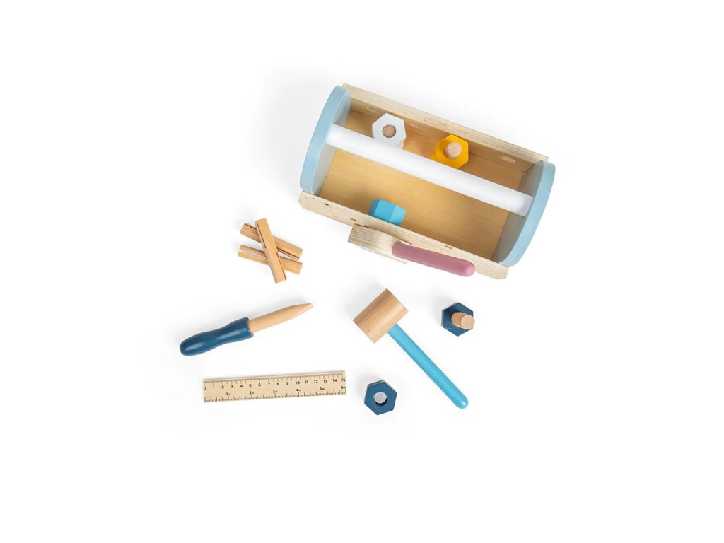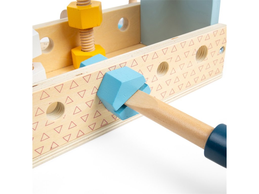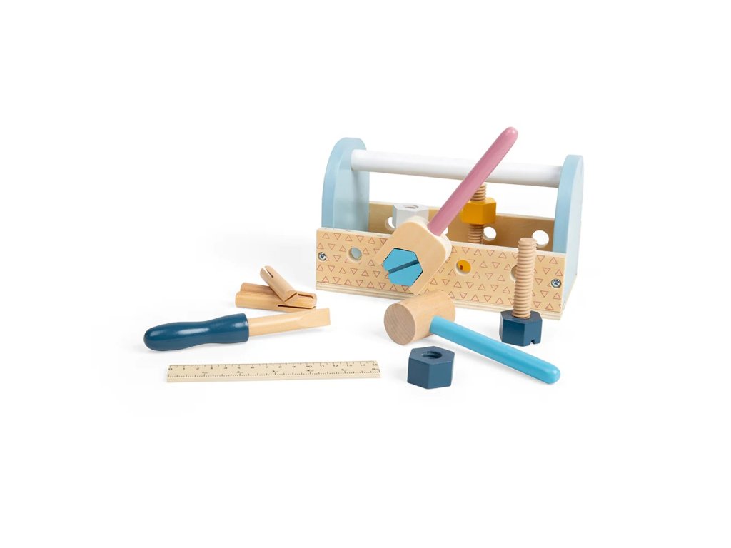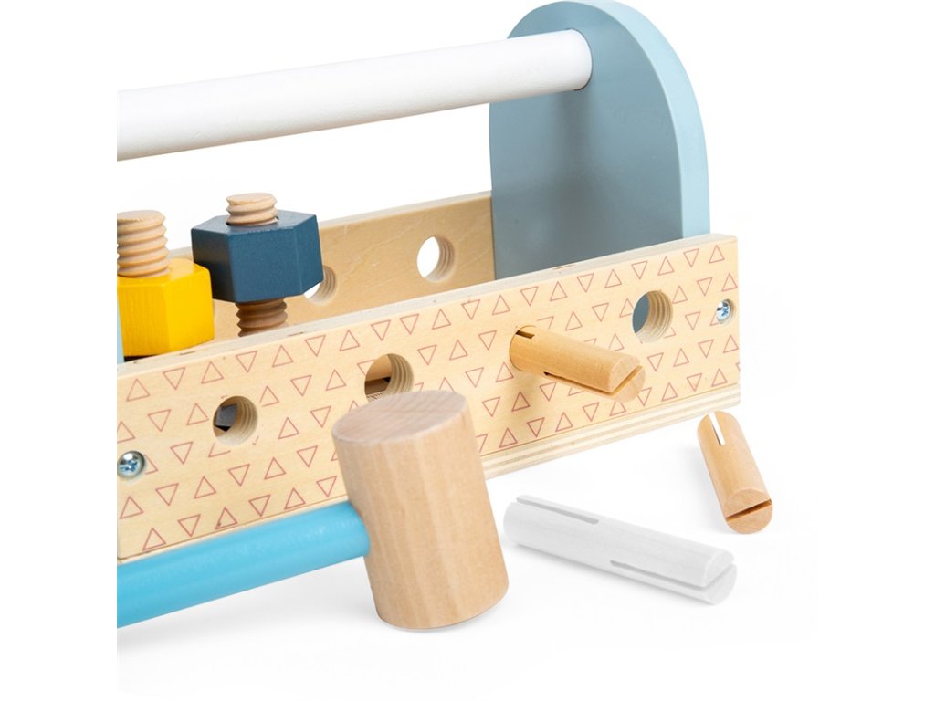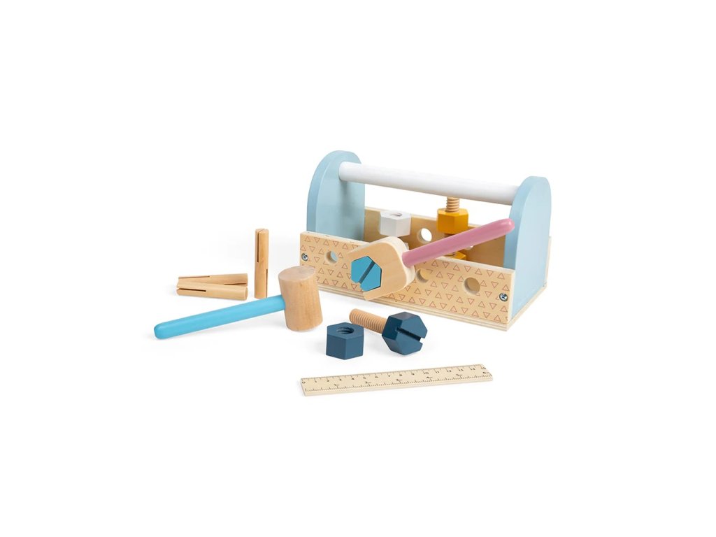 S klíčem, kladivem, maticemi, šrouby, dokonce i šroubovákem a pravítkem obsahuje tato přepravka na nářadí vše, co mladý kutil potřebuje, aby se mohl pustit do opravování. Robustní dřevěná přepravka na nářadí má vestavěnou rukojeť, takže si Vaše dítě může snadno přepravovat své nářadí a pustit se do opravování kdekoliv. Interaktivní hračka pomáhá s rozvojem představivosti, řeči a sociálních dovedností. Vyrobeno z prvotřídního, udržitelného dřeva s certifikací FSC®. Splňuje aktuální evropské bezpečnostní normy. Hlavní vlastnosti: vyrobeno z udržitelného dřeva s certifikací FSC® pomáhá rozvíjet obratnost a koordinacipodporuje kreativní a nápadité hraníkompaktní rozměry Značka a certifikát FSC® (Forest Stewardship Council) zaručuje, že dřevo, ze kterého byl produkt vyroben, nebylo vytěženo nelegálně a pochází z lesů obhospodařovaných šetrným či přírodě blízkým způsobem, ve kterém jsou dodržovány přísné environmentální a sociální požadavky. Značka FSC® na výrobku znamená, že svým nákupem pomáháte chránit lesy a podporujete šetrné, odpovědné či přírodě blízké hospodaření, díky kterému jsou naše lesy stabilnější, zdravější, mají přirozenou druhovou skladbu a lépe odolávají negativním následkům klimatických změn.