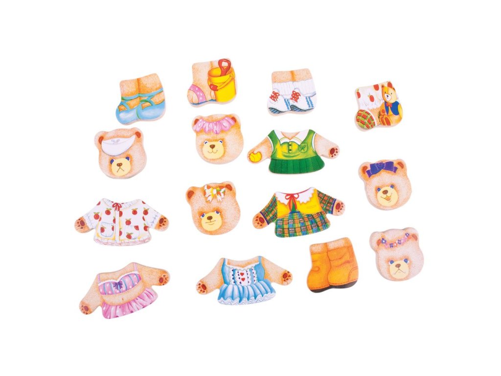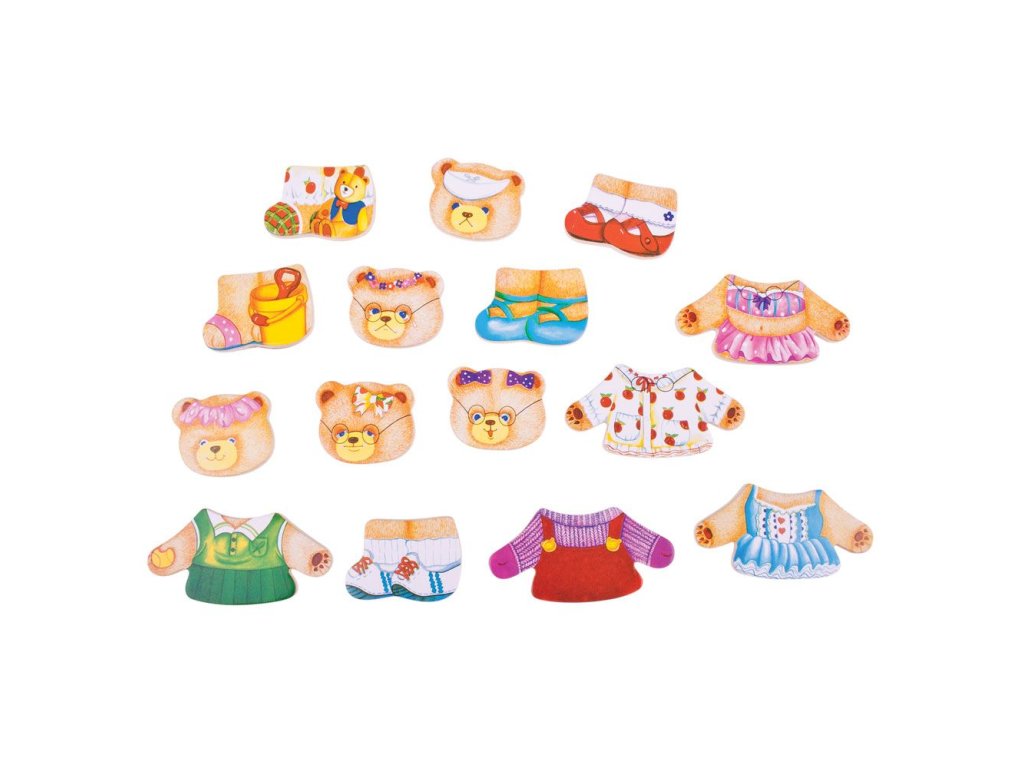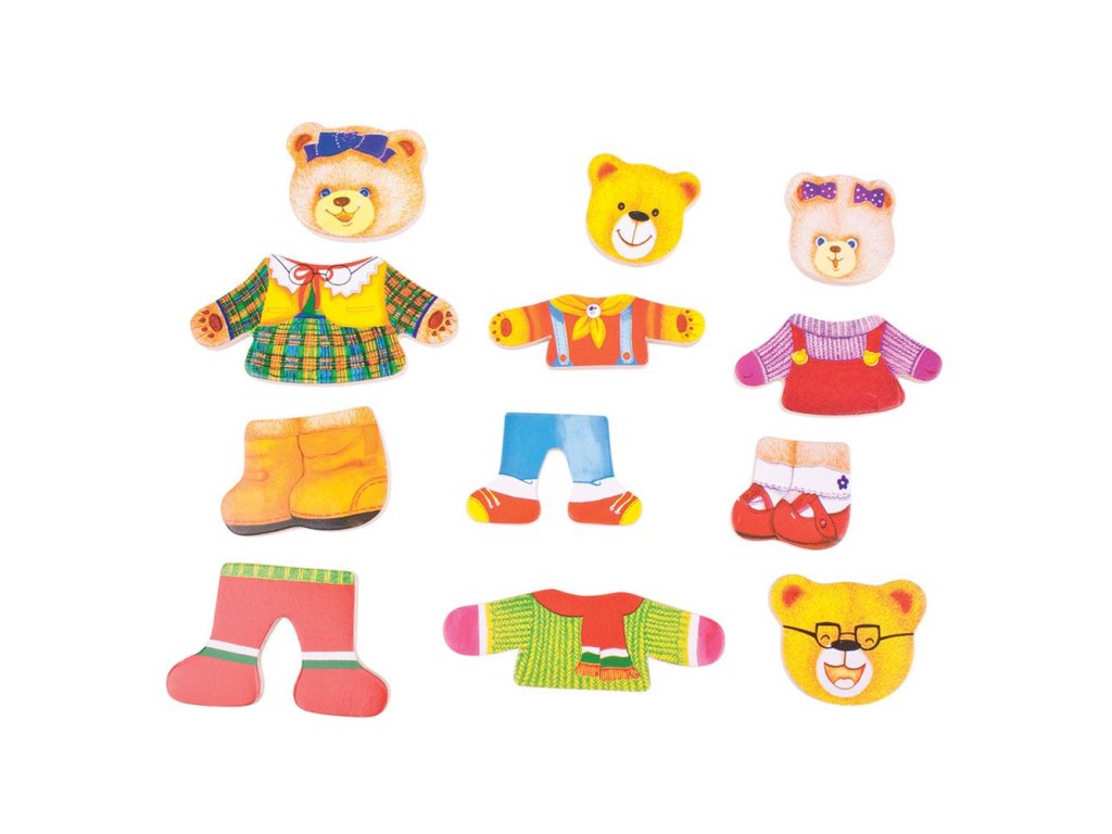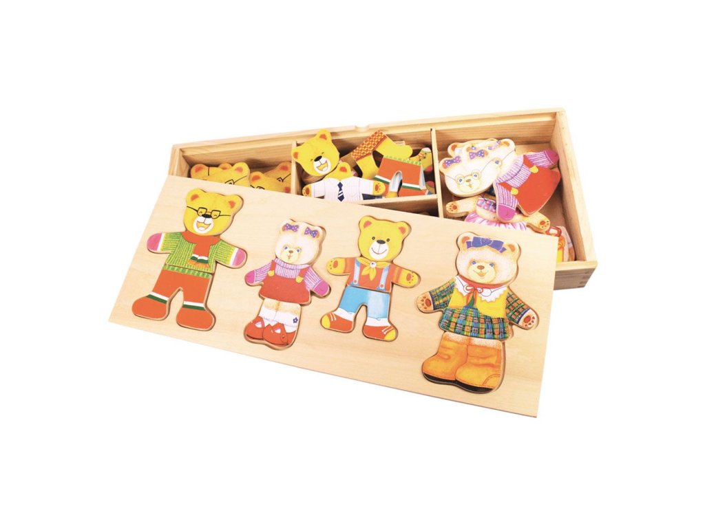 Seznamte se s krásnou medvědí rodinkou - pan Medvěd, paní Medvědice a jejich dvě děti! Zábavná nejklasičtější dětská hračka s výměnnými tvářemi a různými oblečky. Vkládat a kombinovat šaty je pro děti opravdu spousta zábavy! Hlavní vlastnosti: ideální pro rozvoj fantazie, koordinace a obratnostihračka medvědí rodinka je dodávána v elegantní dřevěné krabičce vhodné pro děti od 3 let