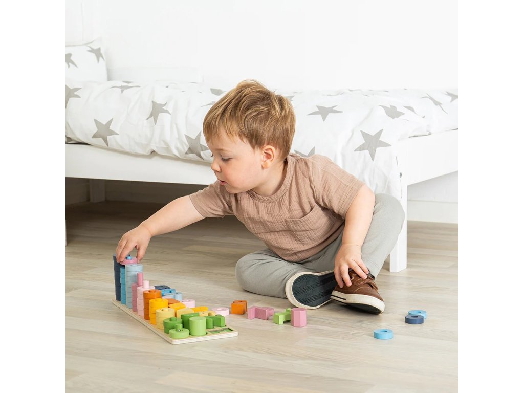 S touto barevnou deskou se děti naučí počítat od 1 do 10 a rozeznávat tvary. Matematická hračka o 78 dílcích děti bude během hry motivovat. Skládá se z nasazovačky, skládačky čísel a tvarů. Tato hračka 3 v 1 dětem pomůže s kognitivním rozvojem, naučí se s ní řešit problémy a logicky myslet. Také si procvičí jemnou motoriku, koordinaci ruka-oko, naučí se poznávat tvary a číslice.Vyrobeno z eticky získaného a udržitelného dřeva s certifikací FSC®, malováno netoxickými barvami a laky. Odpovídá evropským bezpečnostním standardům. Hlavní vlastnosti: dřevěná počítací deska78 dílkůvyrobeno z FSC® certifikovaného dřeva11,5 x 37,3 x 13 cmvhodné od 2 let Značka a certifikát FSC® (Forest Stewardship Council) zaručuje, že dřevo, ze kterého byl produkt vyroben, nebylo vytěženo nelegálně a pochází z lesů obhospodařovaných šetrným či přírodě blízkým způsobem, ve kterém jsou dodržovány přísné environmentální a sociální požadavky. Značka FSC® na výrobku znamená, že svým nákupem pomáháte chránit lesy a podporujete šetrné, odpovědné či přírodě blízké hospodaření, díky kterému jsou naše lesy stabilnější, zdravější, mají přirozenou druhovou skladbu a lépe odolávají negativním následkům klimatických změn.