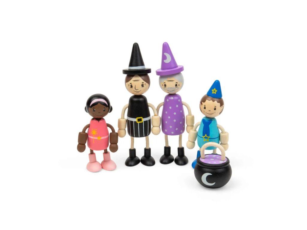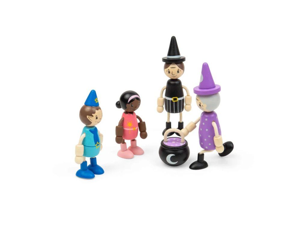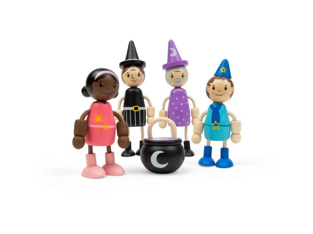 Vydejte se na kouzelné dobrodružství s pohádkovými panenkami! Tato hravá sada obsahuje čtyři magické postavičky - čarodějnici, kouzelníka, vílu a skřítka, včetněi malého kotlíku na míchání lektvarů. Figurky mají ohebné ruce a nohy, takže si děti mohou snadno přehrávat různé pohádkové příběhy, vařit kouzelné nápoje nebo sesílat kouzla. Díky kompaktní velikosti jsou ideální do dětských ručiček a skvěle doplní domeček pro panenky i další herní sady. Panenky jsou vyrobeny z kvalitního FSC® certifikovaného dřeva, které je šetrné k přírodě a zároveň odolné pro každodenní hraní. Hra s pohádkovými postavičkami podporuje rozvoj fantazie, vyprávění příběhů i sociálních dovedností. Manipulace s figurkami zároveň rozvíjí jemnou motoriku a koordinaci ruka–oko. Hlavní vlastnosti: dřevěná hrací sada s pohádkovou tematikou 4 figurky (čarodějnice, kouzelník, víla, skřítek) 1 doplněk – kotlík ohebné ruce a nohy pro variabilní hru podporuje kreativitu, komunikaci a motoriku vyrobeno z FSC® certifikovaného dřeva vhodné pro děti od 18 měsíců Značka a certifikát FSC® (Forest Stewardship Council) zaručuje, že dřevo, ze kterého byl produkt vyroben, nebylo vytěženo nelegálně a pochází z lesů obhospodařovaných šetrným či přírodě blízkým způsobem, ve kterém jsou dodržovány přísné environmentální a sociální požadavky. Značka FSC® na výrobku znamená, že svým nákupem pomáháte chránit lesy a podporujete šetrné, odpovědné či přírodě blízké hospodaření, díky kterému jsou naše lesy stabilnější, zdravější, mají přirozenou druhovou skladbu a lépe odolávají negativním následkům klimatických změn.