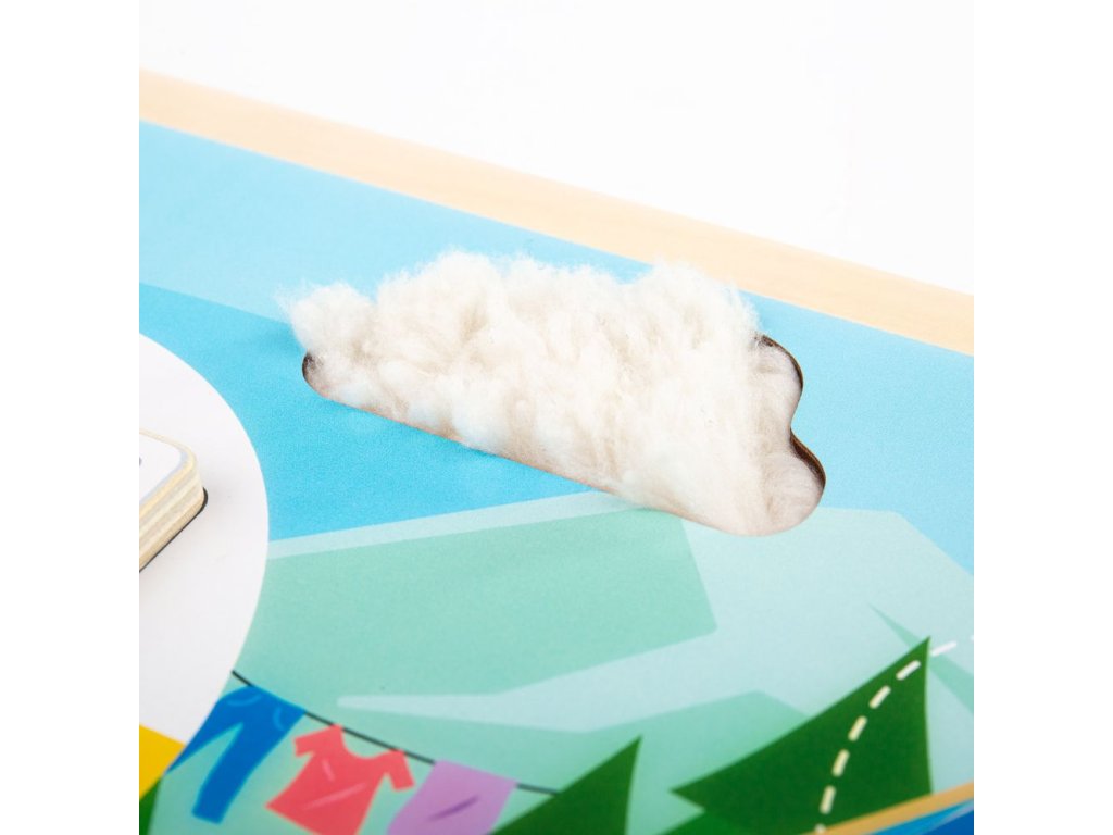 Povzbuďte ty nejmenší, aby prozkoumávali zrakem a dotekem dřevěné senzorické schéma. Co se děje na scéně? Otevřete dveře karavanu, abyste viděli, co se za nimi skrývá! Kdo je ve stanu? Co můžete vidět a čeho se dotknout na obloze? Povzbuďte děti, aby diskutovaly o scéně a o tom, co vidí. Rozvíjí slovní zásobu a podporuje vyprávění. Skvělé pro smyslový rozvoj a rozvoj koordinace ruka/oko, jemné motoriky a obratnosti. Vyrobeno z vysoce kvalitních, zodpovědně získaných materiálů. Splňuje aktuální evropské bezpečnostní normy. Hlavní vlastnosti: rozvíjí slovní zásobupodporuje smyslový rozvoj a koordinační dovednostioriginální didaktická pomůcka