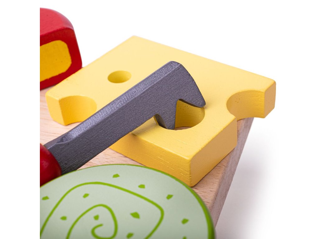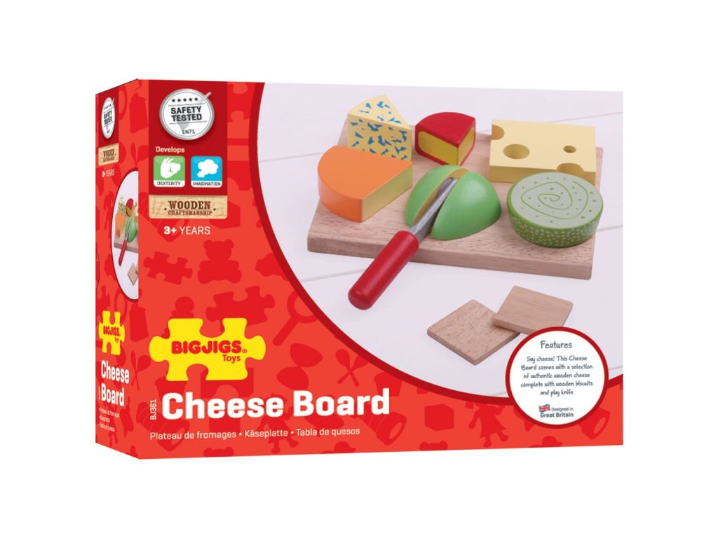 Bigjigs Toys Set dřevěných potravin sýry na desce