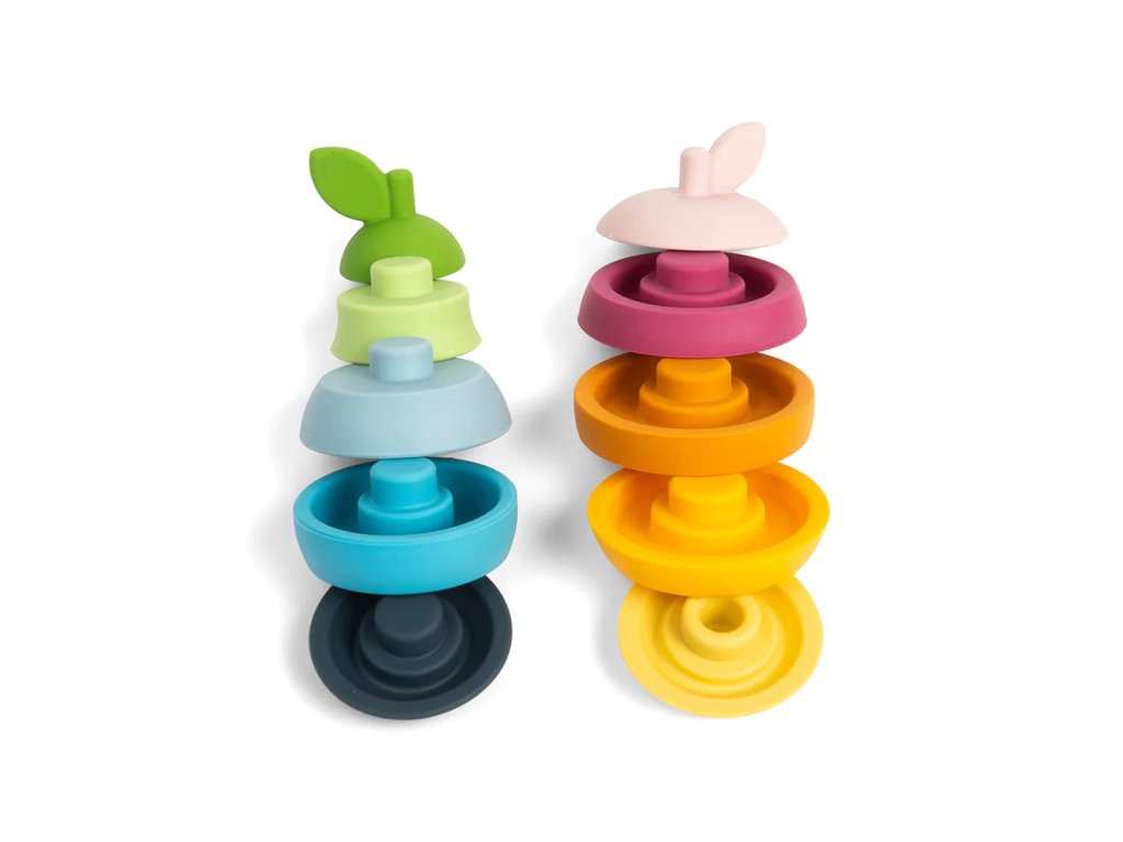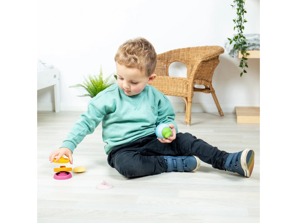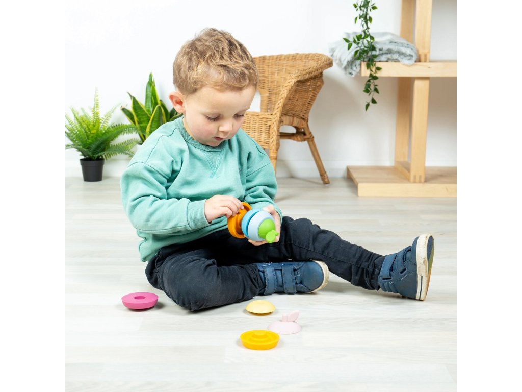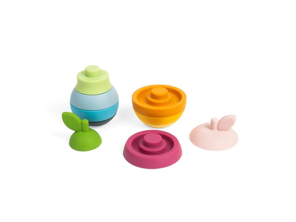 Tato sada Stohovací jablko a hruška je stohovací hračka s ovocným nádechem. Každé ovoce se skládá z pěti barevných dílků v různých velikostech, které mohou děti postavit do svých tvarů jablka a hrušky. Zároveň tyto voňavé silikonové dětské hračky fungují jako kousátka, která zklidňují bolavé dásně. Materiál je odolný, netoxický, snadno se čistí a je odolný vůči skvrnám. Děti si zábavnou formou během hraní posilují koordinaci ruka-oko, zlepšují si jemnou a hrubou motoriku. Vyrobeno ze 100% silikonu. Čistěte teplou vodou a jemným mýdlem. Silikon bez plastů je udržitelnou volbou pro rodiče, kteří hledají ekologické hračky. Hlavní vlastnosti: vyrobeno ze 100% silikonu bez plastů1 jablko s 5 stohovacími kusy1 hruška s 5 stohovacími kusysnadno se udržuje v čistotěmožno mýt v myčcevhodné pro děti od 1 roku
