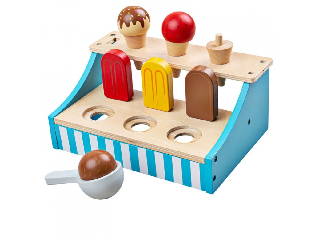 Užijte si hodiny zábavného hraní s těmito lahodnými zmrzlinami a stojánkem na ně. Stačí si jen vybrat svůj oblíbený nanuk... S těmito dřevěnými sladkými dobrotami od Bigjigs Toys prožijete hodiny nápadité a vzdělávací předstírané hry. Obsahuje 6 různých druhů zmrzlin/nanuků. Dodáváno v dřevěném stojanu, ideální pro vystavení ve vašem vesnickém obchodě (BJ488). Skvělý způsob, jak podpořit kreativní a nápadité hraní. Vyrobeno z vysoce kvalitních, zodpovědně získaných materiálů. Splňuje aktuální evropské bezpečnostní normy. Hlavní vlastnosti: obsahuje 3 zmrzliny, 3 nanuky, naběračku na zmrzlinu a stojanpodporuje kreativitu a nápaditost