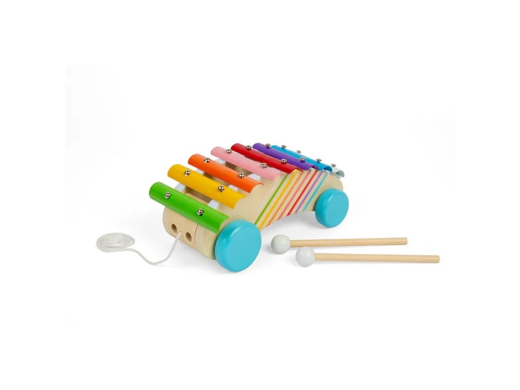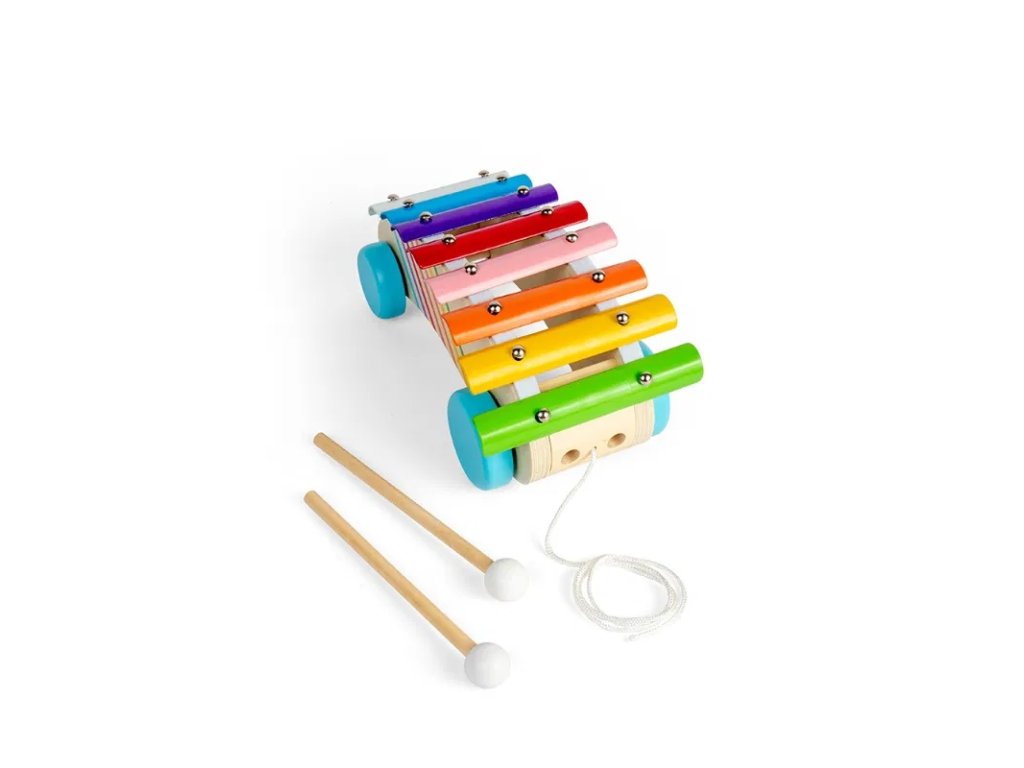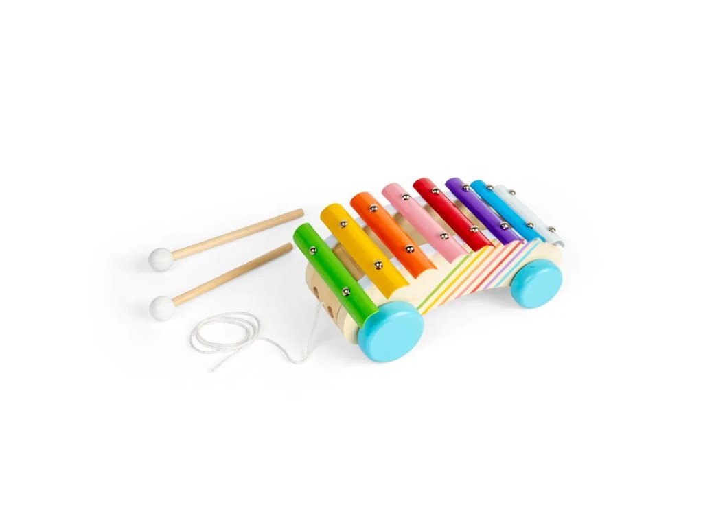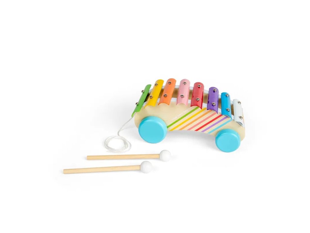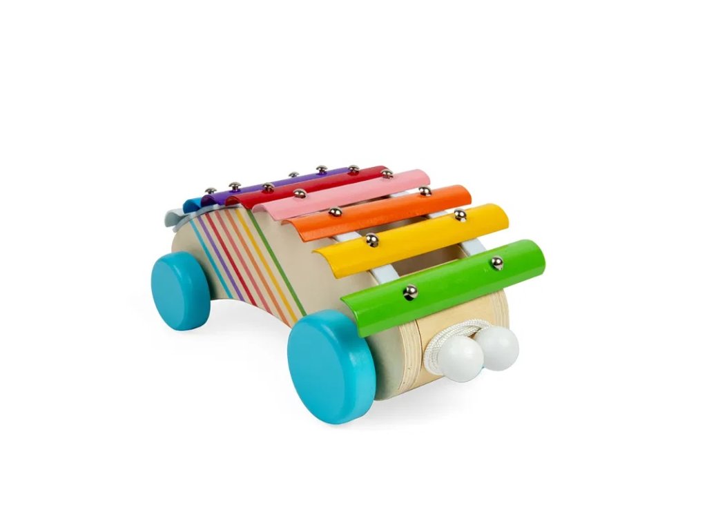Pochodujte do rytmu s tímto hravým xylofonem. 2 dřevěné paličky, 8 barevných kláves a 4 dřevěná kolečka umožňují dětem dělat hudbu kdekoliv, protože díky praktické šňůře slouží také jako tahací hračka. Díky tomuto nástroji může dítě objevovat své nadání. Hudební hračka je vhodná pro kognitivní a fyzický vývoj dětí. Údery do kláves a poslech veselých tónů, které vydávají, podpoří sluchové smysly a kreativitu dětí, zatímco prvek tahu posílí jejich jemnou i hrubou motoriku a koordinaci. Vyrobeno ze dřeva s certifikací FSC® a barveno netoxickými laky a barvami. Splňuje všechny aktuální evropské bezpečnostní normy. Nejedná se o hudební nástroj, ale pouze o hračku. Hlavní vlastnosti: tahací a hudební hračka v jednomskvělý úvod do světa hudbypodporuje kognitivní a fyzický vývojrozvíjí jemnou i hrubou motoriku Značka a certifikát FSC® (Forest Stewardship Council) zaručuje, že dřevo, ze kterého byl produkt vyroben, nebylo vytěženo nelegálně a pochází z lesů obhospodařovaných šetrným či přírodě blízkým způsobem, ve kterém jsou dodržovány přísné environmentální a sociální požadavky. Značka FSC® na výrobku znamená, že svým nákupem pomáháte chránit lesy a podporujete šetrné, odpovědné či přírodě blízké hospodaření, díky kterému jsou naše lesy stabilnější, zdravější, mají přirozenou druhovou skladbu a lépe odolávají negativním následkům klimatických změn.