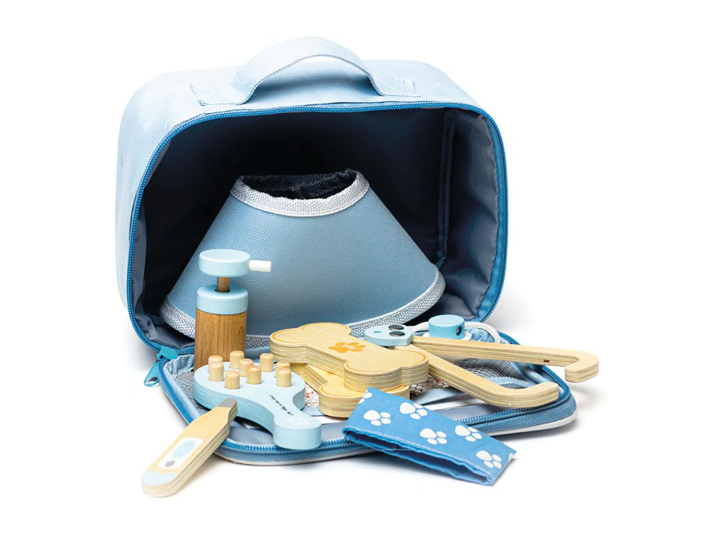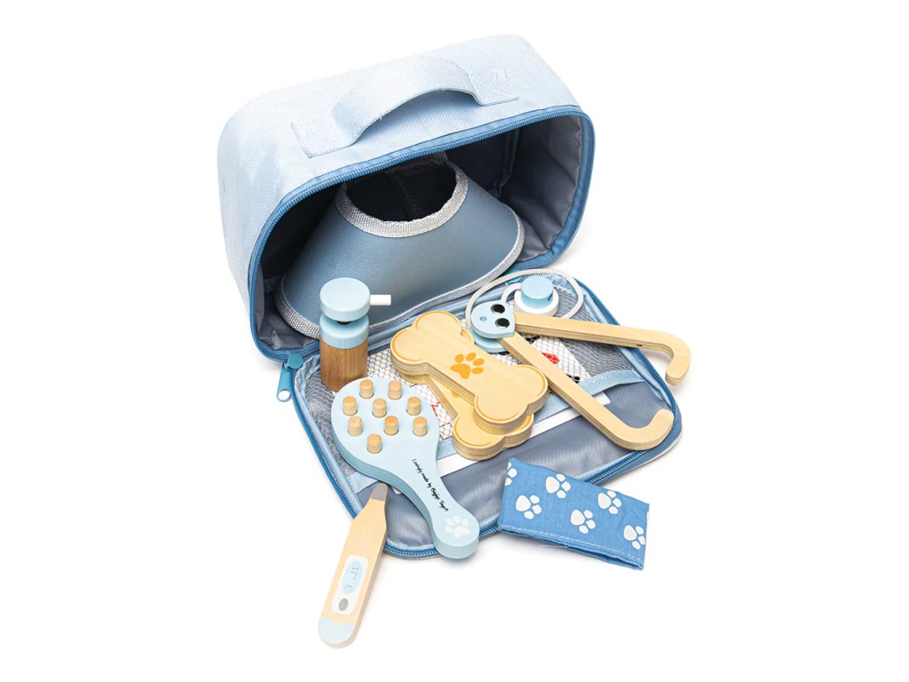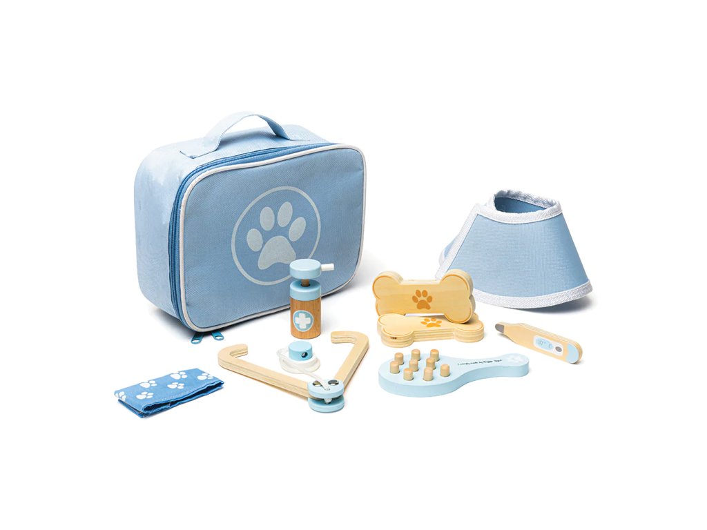 Tato praktická veterinární sada obsahuje vše, co mladí veterináři potřebují, aby mohli ošetřit nemocné medvídky nebo zvířata. Pomocí stetoskopu mohou děti poslouchat srdce pacienta, kontrolovat teplotu pomocí teploměru a dokonce se podívat do uší otoskopem. Tato hrací sada je dodávána zcela bez plastů ve snadno skladovatelné brašně. Hlavní vlastnosti: obsahuje 12 dílůpraktická brašna pro ukládánírozvíjí komunikační schopnosti a prohlubuje lásku ke zvířátkům