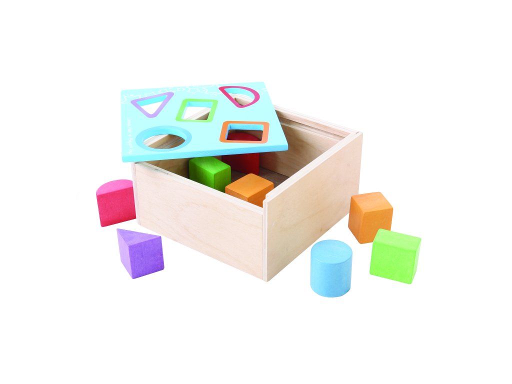 Tato hračka pomáha rozvíjet u vašeho batolete rozpoznávání barev a tvarů, které jsou klíčem ke vhazování do krabičky. Tato dřevěná krabička je skvělou vzdělávací hračkou, u které se vaše dítě učí hrou. Pastelově modré vysouvatelné víko je odolné pro hru předškolního dítěte.Hlavní vlastnosti: součástí je 5 kostiček různých tvarů a barevpomáhá rozvíjet zručnost a koordinaci