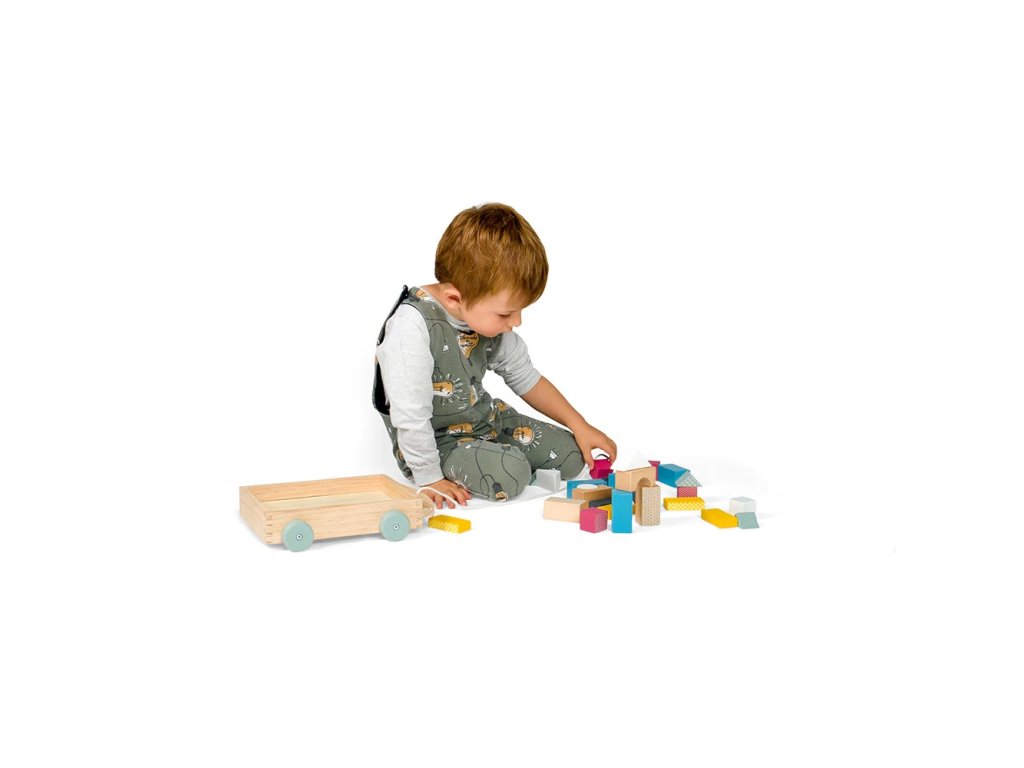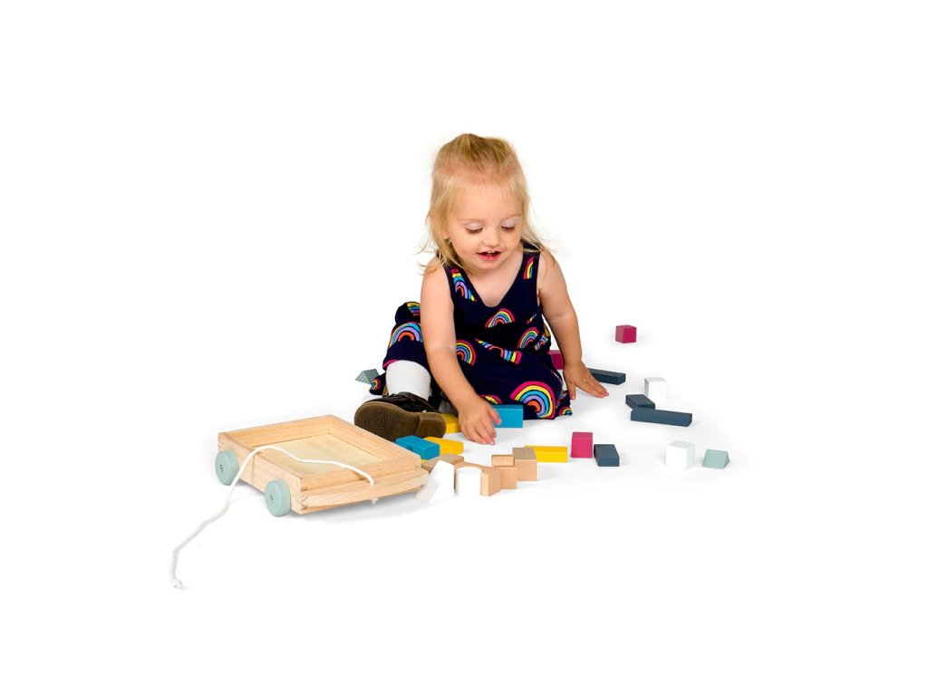 Bigjigs Toys Vozík s dřevěnými kostkami