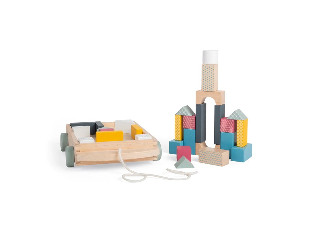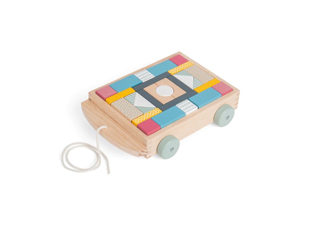 Tento vozík s kostkami v pastelových barvách potěší každé dítě. Je vyroben z prvotřídního, udržitelného dřeva s certifikací FSC® a barven netoxickými barvami a laky. Ideální pro rozvoj dětské koordinace ruka/oko a zlepšení znalostí tvarů a rozpoznávání barev. Tvary mají perfektní velikost, aby se úhledně vešly do dřevěného vozíku. Mají jedinečné vzory, které upoutají pozornost Vašich dětí. Ideální hračka pro metodu Montessori. Splňuje aktuální evropské bezpečnostní normy. Hlavní vlastnosti: obsahuje 29 kostekmoderní barevný designpevný tažný provazpomáhá v rozvoji rovnováhy a motoriky dětírozvíjí koordinaci ruky/okotrénuje rozpoznávání barev a tvarůideální hračka pro metodu Montessorivhodné pro děti od 18 měsíců Značka a certifikát FSC® (Forest Stewardship Council) zaručuje, že dřevo, ze kterého byl produkt vyroben, nebylo vytěženo nelegálně a pochází z lesů obhospodařovaných šetrným či přírodě blízkým způsobem, ve kterém jsou dodržovány přísné environmentální a sociální požadavky. Značka FSC® na výrobku znamená, že svým nákupem pomáháte chránit lesy a podporujete šetrné, odpovědné či přírodě blízké hospodaření, díky kterému jsou naše lesy stabilnější, zdravější, mají přirozenou druhovou skladbu a lépe odolávají negativním následkům klimatických změn.