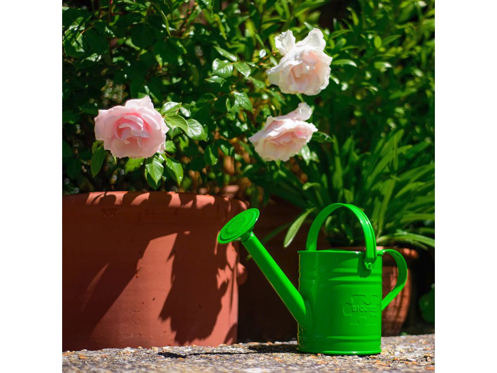 Zahradní konvička je nezbytnou součástí vybavení pro malého zahradníka. Malí zahradníci budou milovat zelenou konvičku Bigjigs Toys. Skvělý způsob jak povzbudit malé děti, aby vypomáhaly v zahradě a naučily se vše o údržbě zahrady a péči o přírodu. Ideální pro zalévání rostlin s mámou a tátou. Hlavní vlastnosti: horní a boční rukojeť usnadňující držení pro malé dětské ručičkykonvička je vyrobena z kovuodpovídá současným evropským bezpečnostním normám