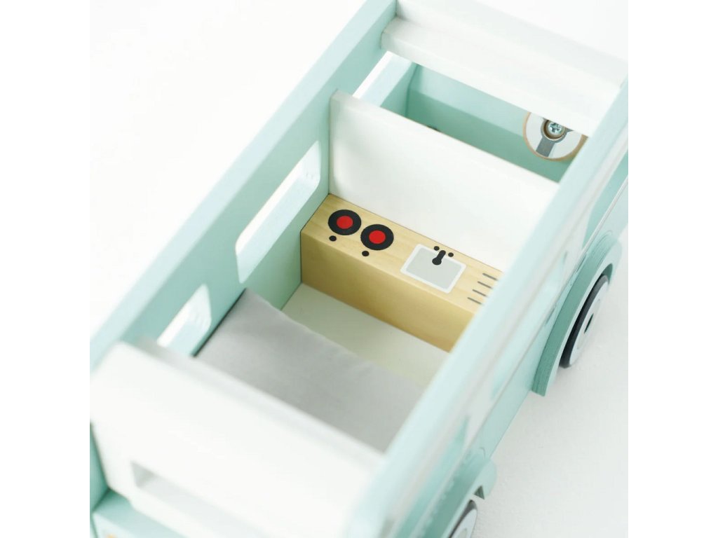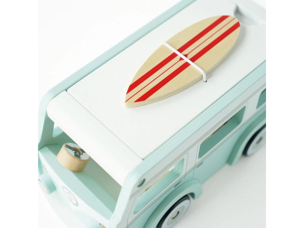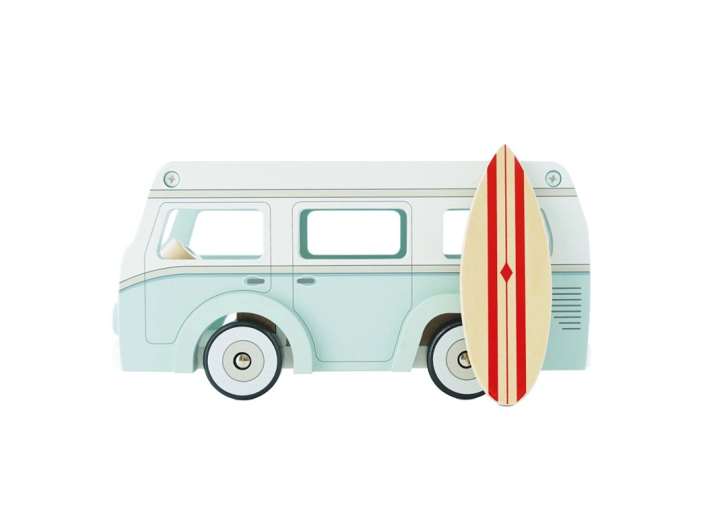 Vintage autokaravan vás doveze na výlet i dovolenou! Představivé hře se meze nekladou, autokaravan tak může vyjet na surfařský nebo cyklistický výlet, na cestu po Evropě… Je malován pastelovou mátovou a bílou barvou. Má odnímatelnou střechu a uvnitř matraci, nechybí ani surf a mnoho malovaných detailů. Vhodné pro postavičky do 10 cm, ty nejsou součástí balení. Hračky s účelemVšechny hračky firmy Le Toy Van jsou vyrobeny s cílem – aby dlouho vydržely. Designovány s láskou zkušenými řemeslníky za použití etických praktik a udržitelných materiálů, které jsou laskavější k naší planetě. Hlavní vlastnosti: vyrobeno eticky z udržitelného dřevatestováno dle nejpřísnějších standardůmalováno netoxickými barvami na bázi vodyinspiruje k představivé hřerozvíjí kognitivní dovednosti Daisylane kolekce: Prestižní kolekce domečků pro panenky a doplňků firmy Le Toy Van. Před více než 25 lety zakladatel Georges navrhl svůj úplně první domeček pro panenky, stavební kámen této firmy. Vyrobeno eticky z udržitelných materiálů, dřevěné domečky pro panenky Daisylane jsou jedinečné a nebudou dětskou představivost držet zpátky. Rodinné dědictví, opravdová investice do hraní. Značka a certifikát FSC® (Forest Stewardship Council) zaručuje, že dřevo, ze kterého byl produkt vyroben, nebylo vytěženo nelegálně a pochází z lesů obhospodařovaných šetrným či přírodě blízkým způsobem, ve kterém jsou dodržovány přísné environmentální a sociální požadavky. Značka FSC® na výrobku znamená, že svým nákupem pomáháte chránit lesy a podporujete šetrné, odpovědné či přírodě blízké hospodaření, díky kterému jsou naše lesy stabilnější, zdravější, mají přirozenou druhovou skladbu a lépe odolávají negativním následkům klimatických změn.