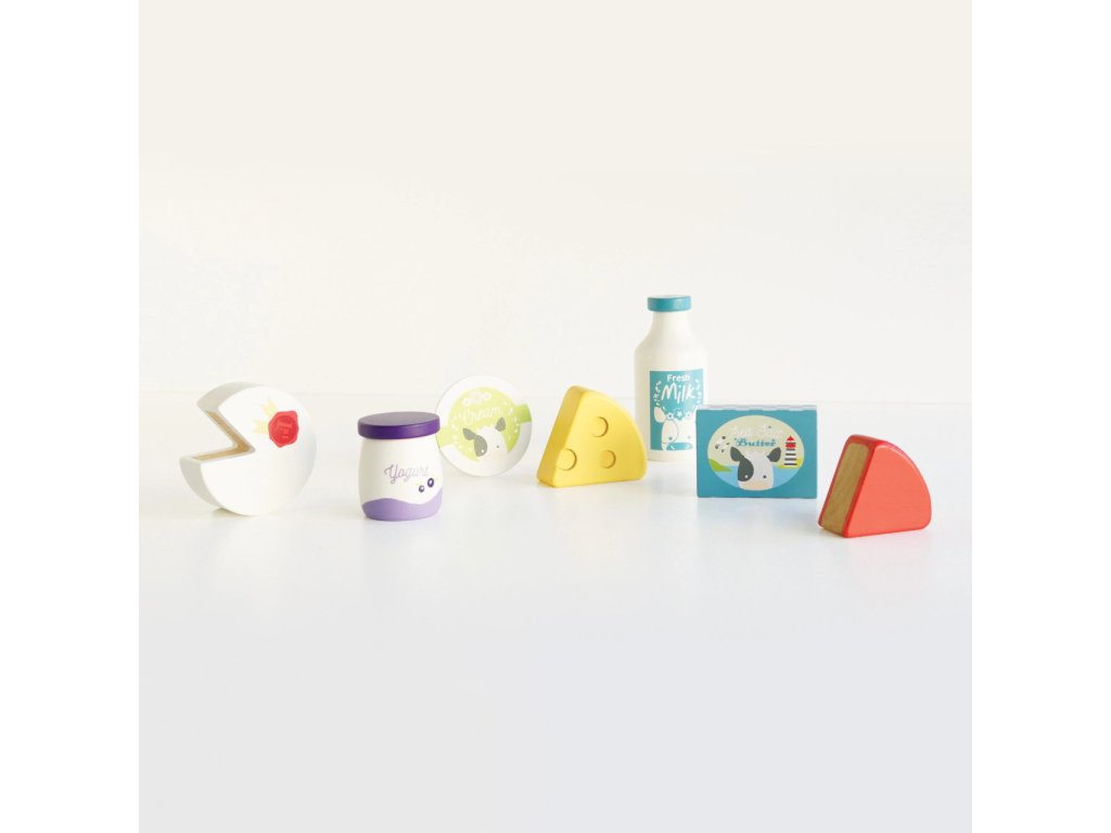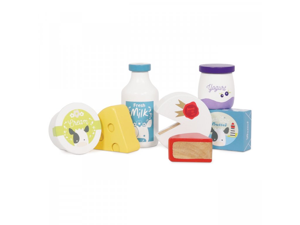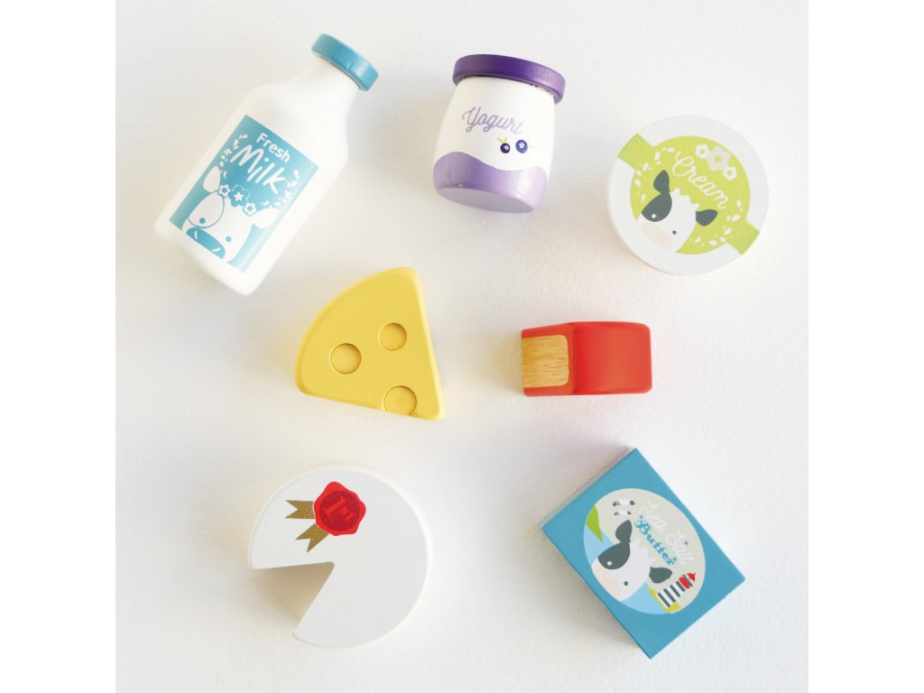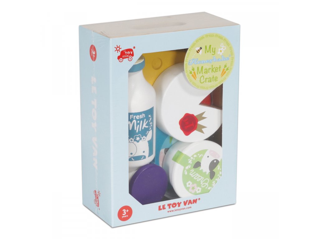 Bedýnka s mléčnými výrobky je perfektní pro hru na role. Najdete v ní láhev mléka, máslo, jogurt, smetanu a 3 typy sýru. Děti se díky hračce naučí o rozdílných potravinách a důležitosti vyvážené stravy. Vyrobeno z pevného a udržitelného dřeva, malováno netoxickými barvami, velikost tak akorát pro malé dětské ruce. Hračka pomůže při rozvoji koordinace a jemné motoriky. Ideální doplněk dětských prodejních stánků a kuchyněk. Hračky s účelemVšechny hračky firmy Le Toy Van jsou vyrobeny s cílem – aby dlouho vydržely. Designovány s láskou zkušenými řemeslníky za použití etických praktik a udržitelných materiálů, které jsou laskavější k naší planetě. Hlavní vlastnosti: vyrobeno eticky z udržitelného dřevatestováno dle nejpřísnějších standardůmalováno netoxickými barvami na bázi vodyinspiruje k představivé hřerozvíjí kognitivní dovednosti Honeybake kolekce: Hračky v této kolekci jsou vhodné k objevování, pomohou dětem s rozvojem představivosti, sociálních a verbálních dovedností a kognitivních funkcí. Tradiční design s moderními detaily děti jistě bude bavit. Honeybake je kolekce Le Toy Van, která vyhrála nejvíce ocenění, a to za design, kvalitu, bezpečnost a také za vzdělávací a herní hodnotu.