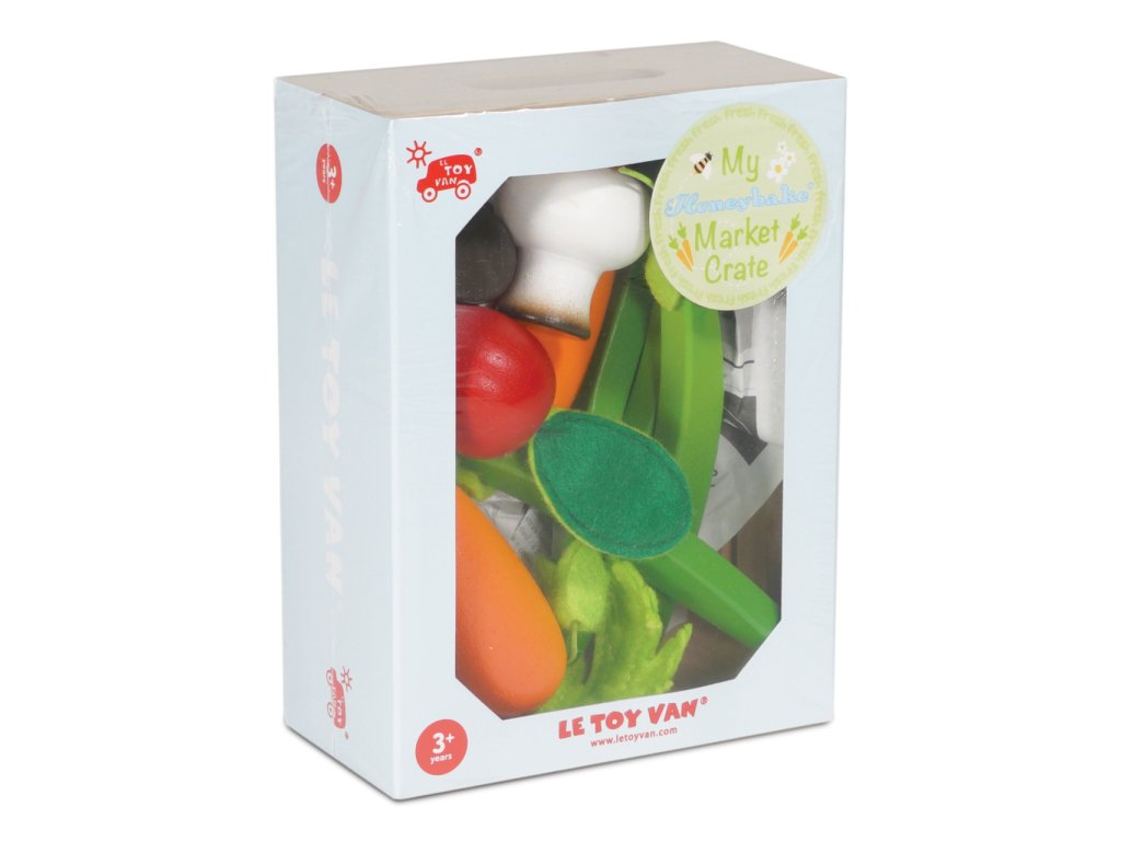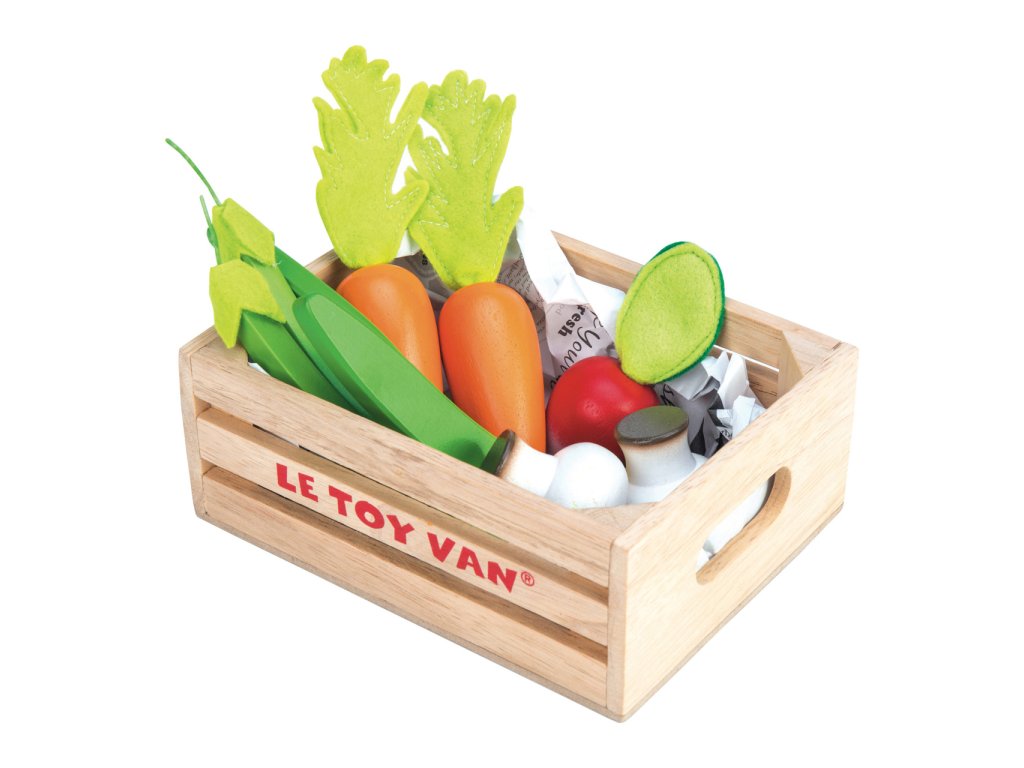 Bedýnka se zeleninou je perfektní pro hru na role. Najdete v ní zahradní zeleninu, jako mrkev, ředkev, žampiony a cuketu. Děti se díky hračce naučí o rozdílných potravinách a důležitosti vyvážené stravy. Vyrobeno z pevného a udržitelného dřeva, malováno netoxickými barvami, velikost tak akorát pro malé dětské ruce. Hračka pomůže při rozvoji koordinace a jemné motoriky. Ideální doplněk dětských prodejních stánků a kuchyněk. Hračky s účelemVšechny hračky firmy Le Toy Van jsou vyrobeny s cílem – aby dlouho vydržely. Designovány s láskou zkušenými řemeslníky za použití etických praktik a udržitelných materiálů, které jsou laskavější k naší planetě. Hlavní vlastnosti: vyrobeno eticky z udržitelného dřevatestováno dle nejpřísnějších standardůmalováno netoxickými barvami na bázi vodyinspiruje k představivé hřerozvíjí kognitivní dovednosti Honeybake kolekce: Hračky v této kolekci jsou vhodné k objevování, pomohou dětem s rozvojem představivosti, sociálních a verbálních dovedností a kognitivních funkcí. Tradiční design s moderními detaily děti jistě bude bavit. Honeybake je kolekce Le Toy Van, která vyhrála nejvíce ocenění, a to za design, kvalitu, bezpečnost a také za vzdělávací a herní hodnotu.