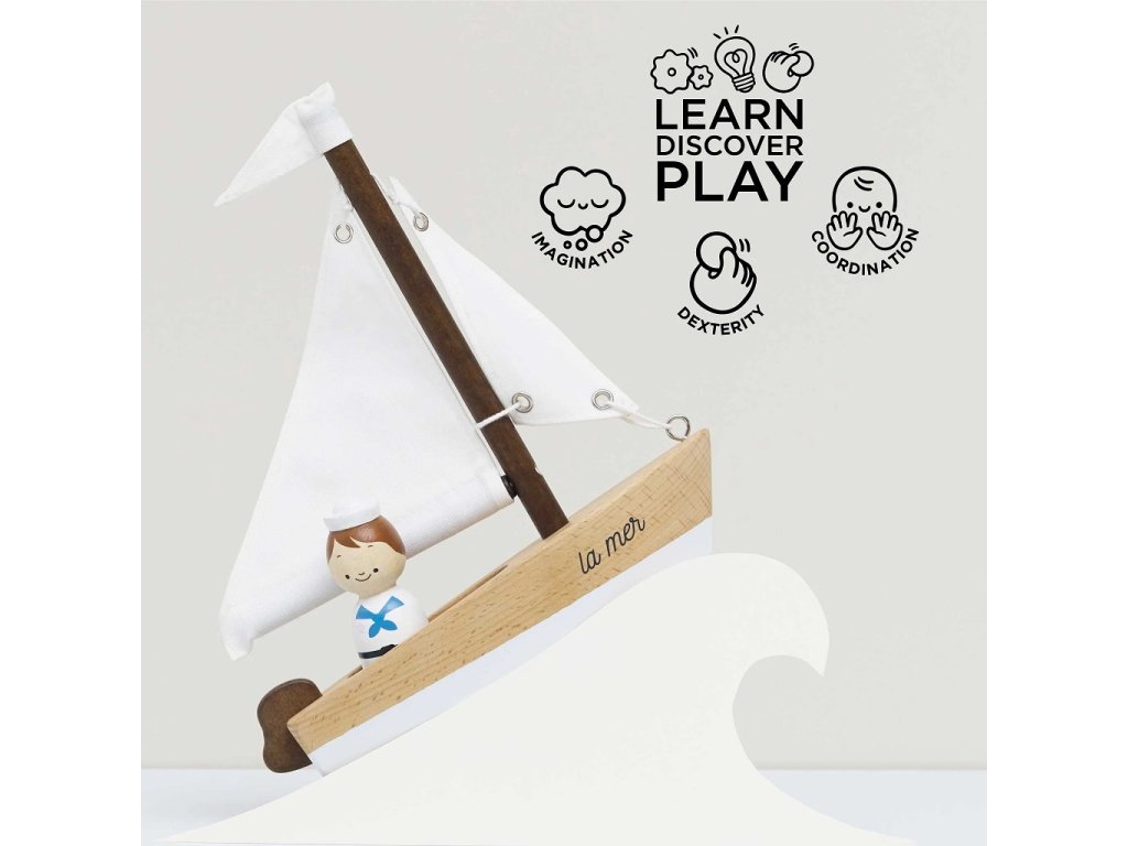 Vyplujte na širé moře a objevujte nová dobrodružství s touto nádhernou plachetnicí, která září nadčasovým kouzlem. Dřevěná plachetnice je ručně vyrobená z bukového dřeva s certifikací FSC ®, některé části jsou mořeny v barvě ořechu, přináší tak nádech autentičnosti. Dekorováno netoxickými barvami na bázi vody, které jsou bezpečné pro děti. Bavlněná vlajka a plachty se lehce vlní ve větru a pohánějí loď k nekonečným obzorům, což zvyšuje nápaditou hrací hodnotu této hračky. Loď doprovází miniaturní dřevěný námořník, který má ručně malovaný námořnický oděv, díky tomu se hra s touto plachetnicí se stává ještě zábavnější. Ať už je loď používána jako dekorativní prvek, nebo jako hračka, okamžitě poutá pozornost každého dítěte. Pomáhá rozvíjet kognitivní dovednosti, zručnost a koordinaci ruka - oko. Hračky s účelemVšechny hračky firmy Le Toy Van jsou vyrobeny s cílem – aby dlouho vydržely. Designovány s láskou zkušenými řemeslníky za použití etických praktik a udržitelných materiálů, které jsou laskavější k naší planetě. Hlavní vlastnosti: rozvíjí zručnost, koordinaci a představivostvyrobeno z dřeva s certifikátem FSC®malováno netoxickými barvami na bázi vodytestováno dle nejpřísnějších standardůhračka bez plastů Značka a certifikát FSC® (Forest Stewardship Council) zaručuje, že dřevo, ze kterého byl produkt vyroben, nebylo vytěženo nelegálně a pochází z lesů obhospodařovaných šetrným či přírodě blízkým způsobem, ve kterém jsou dodržovány přísné environmentální a sociální požadavky. Značka FSC® na výrobku znamená, že svým nákupem pomáháte chránit lesy a podporujete šetrné, odpovědné či přírodě blízké hospodaření, díky kterému jsou naše lesy stabilnější, zdravější, mají přirozenou druhovou skladbu a lépe odolávají negativním následkům klimatických změn.