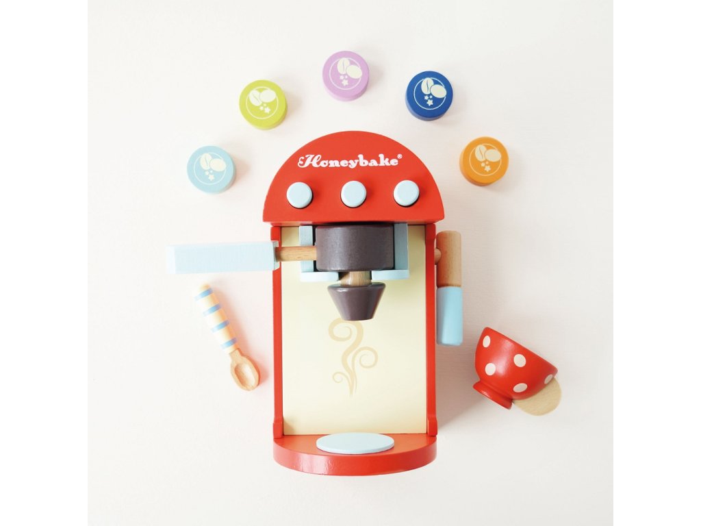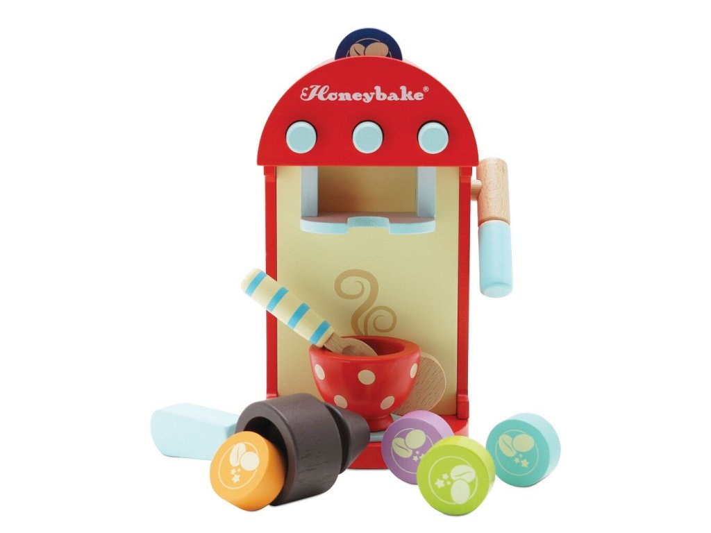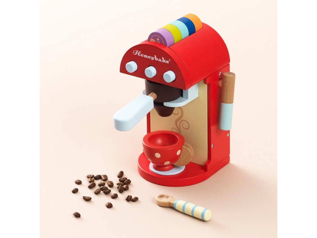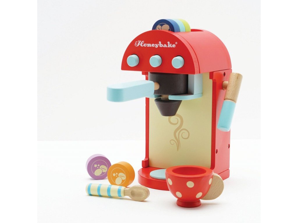 Kdo si dá kávu? Tento realistický kávovar nadchne mladé baristy a baristky. V balení dřevěné kávové kapsle, které lze jednoduše vložit do páky a uvařit kávu přímo do malovaného hrnečku. Na boční straně samozřejmě najdete také napěňovač mléka. Nechybí ani lžička, kávové kapsle lze uložit do otvoru svrchu kávovaru. Hračka je vyrobena z udržitelného a odolného dřeva, malována pestrými netoxickými barvami na bázi vody. Hračky s účelemVšechny hračky firmy Le Toy Van jsou vyrobeny s cílem – aby dlouho vydržely. Designovány s láskou zkušenými řemeslníky za použití etických praktik a udržitelných materiálů, které jsou laskavější k naší planetě. Hlavní vlastnosti: vyrobeno eticky z udržitelného dřevatestováno dle nejpřísnějších standardůmalováno netoxickými barvami na bázi vodyinspiruje k představivé hřerozvíjí kognitivní dovednosti Ocenění hračky:Made For Mums Gold Award 2017Progressive Preschool Award Winner 2014 Honeybake kolekce: Hračky v této kolekci jsou vhodné k objevování, pomohou dětem s rozvojem představivosti, sociálních a verbálních dovedností a kognitivních funkcí. Tradiční design s moderními detaily děti jistě bude bavit. Honeybake je kolekce Le Toy Van, která vyhrála nejvíce ocenění, a to za design, kvalitu, bezpečnost a také za vzdělávací a herní hodnotu. Značka a certifikát FSC® (Forest Stewardship Council) zaručuje, že dřevo, ze kterého byl produkt vyroben, nebylo vytěženo nelegálně a pochází z lesů obhospodařovaných šetrným či přírodě blízkým způsobem, ve kterém jsou dodržovány přísné environmentální a sociální požadavky. Značka FSC® na výrobku znamená, že svým nákupem pomáháte chránit lesy a podporujete šetrné, odpovědné či přírodě blízké hospodaření, díky kterému jsou naše lesy stabilnější, zdravější, mají přirozenou druhovou skladbu a lépe odolávají negativním následkům klimatických změn.