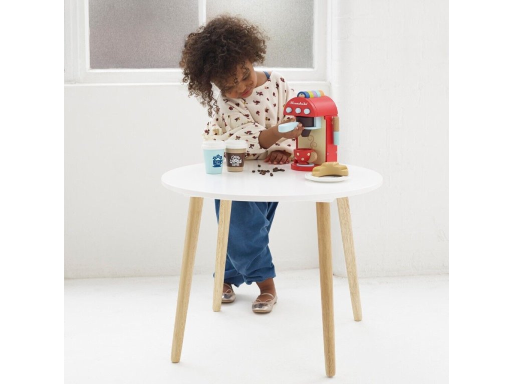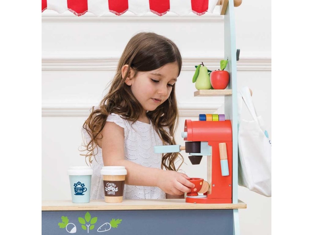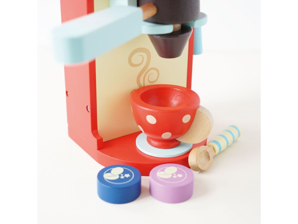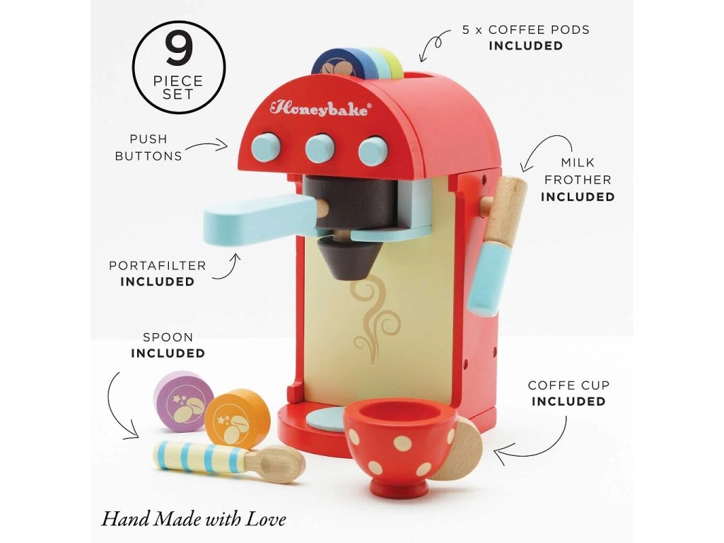 Kdo si dá kávu? Tento realistický kávovar nadchne mladé baristy a baristky. V balení dřevěné kávové kapsle, které lze jednoduše vložit do páky a uvařit kávu přímo do malovaného hrnečku. Na boční straně samozřejmě najdete také napěňovač mléka. Nechybí ani lžička, kávové kapsle lze uložit do otvoru svrchu kávovaru. Hračka je vyrobena z udržitelného a odolného dřeva, malována pestrými netoxickými barvami na bázi vody. Hračky s účelemVšechny hračky firmy Le Toy Van jsou vyrobeny s cílem – aby dlouho vydržely. Designovány s láskou zkušenými řemeslníky za použití etických praktik a udržitelných materiálů, které jsou laskavější k naší planetě. Hlavní vlastnosti: vyrobeno eticky z udržitelného dřevatestováno dle nejpřísnějších standardůmalováno netoxickými barvami na bázi vodyinspiruje k představivé hřerozvíjí kognitivní dovednosti Ocenění hračky:Made For Mums Gold Award 2017Progressive Preschool Award Winner 2014 Honeybake kolekce: Hračky v této kolekci jsou vhodné k objevování, pomohou dětem s rozvojem představivosti, sociálních a verbálních dovedností a kognitivních funkcí. Tradiční design s moderními detaily děti jistě bude bavit. Honeybake je kolekce Le Toy Van, která vyhrála nejvíce ocenění, a to za design, kvalitu, bezpečnost a také za vzdělávací a herní hodnotu. Značka a certifikát FSC® (Forest Stewardship Council) zaručuje, že dřevo, ze kterého byl produkt vyroben, nebylo vytěženo nelegálně a pochází z lesů obhospodařovaných šetrným či přírodě blízkým způsobem, ve kterém jsou dodržovány přísné environmentální a sociální požadavky. Značka FSC® na výrobku znamená, že svým nákupem pomáháte chránit lesy a podporujete šetrné, odpovědné či přírodě blízké hospodaření, díky kterému jsou naše lesy stabilnější, zdravější, mají přirozenou druhovou skladbu a lépe odolávají negativním následkům klimatických změn.