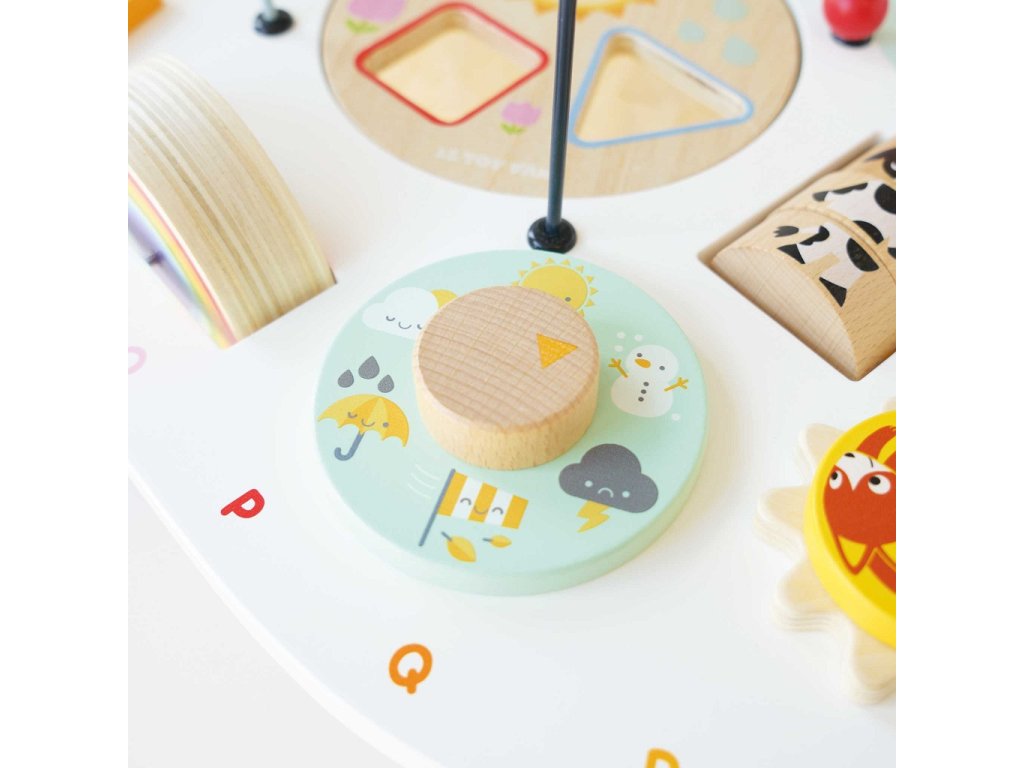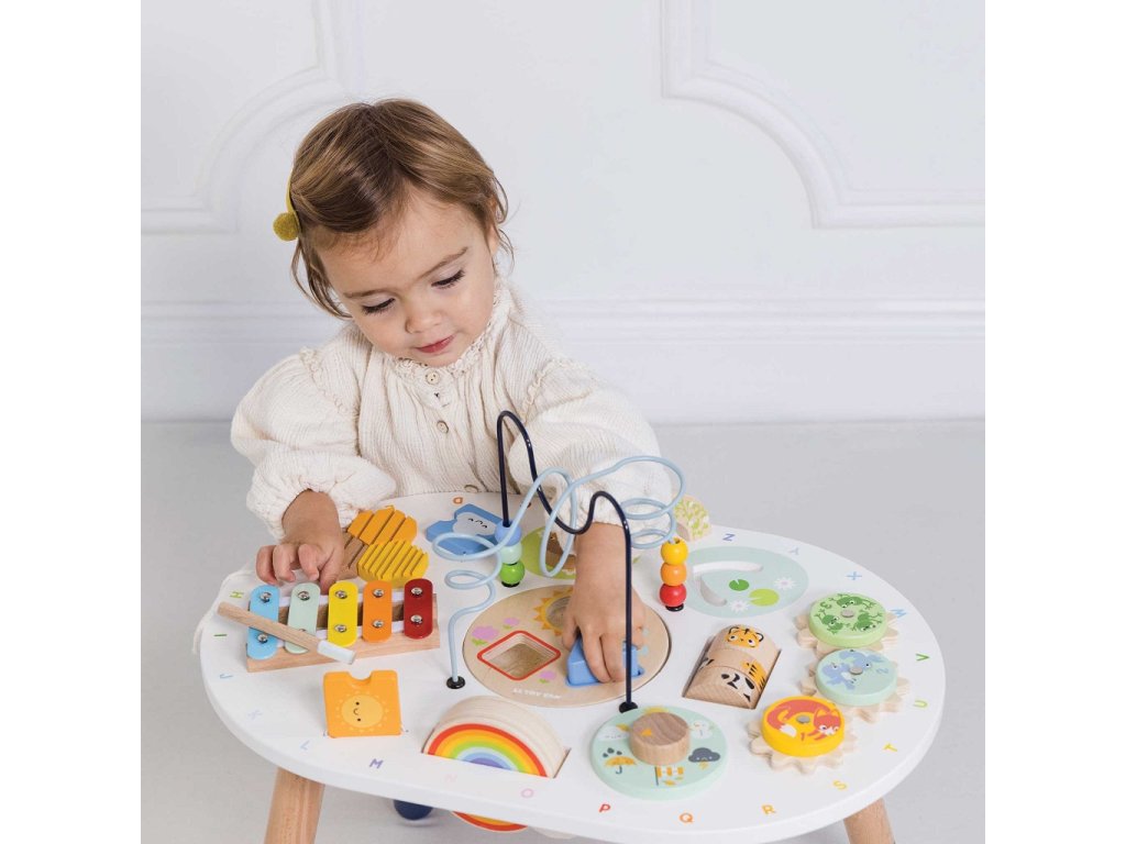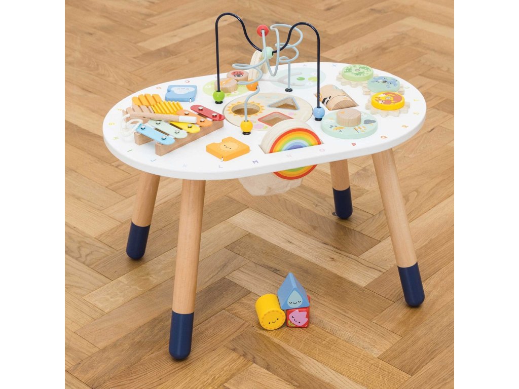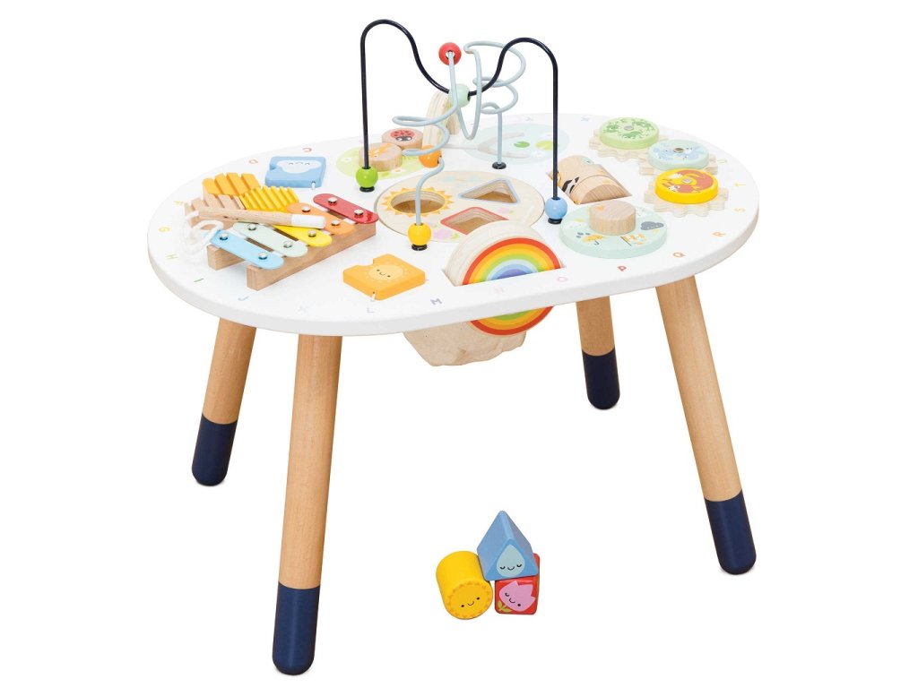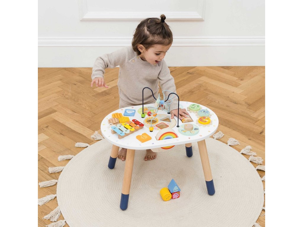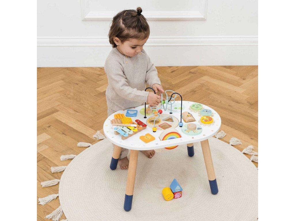 Tento aktivní motorický stůl potěší nejen oko, ale také ostatní smysly. Perfektní hračka pro batolata, pomůže s rozvojem představivosti. Stoleček je plný multisenzorických aktivit, které zabaví všechny zvídavé děti. Najdou na něm korálkový labyrint, vkládačku, xylofon, ozubená kolečka, otočné chrastítko a další! Takový počet aktivit děti zabaví na dlouhé hodiny.Tento robustní stoleček vám vydrží opravdu dlouho, je vyroben z udržitelného FSC® dřeva a dekorován zářivými základními barvami, které jsou netoxické. Senzorické hračky Le Toy Van si můžete předávat z generace na generaci. Hlavní vlastnosti: vyrobeno z FSC dřevamultifunkční dřevěný aktivní stolekrozvíjí dětské smysly během hryveselý pestrobarevný design stimuluje představivostudržitelná hračka inspirována přírodou Petilou kolekce: Kolekce pro nemluvňata a batolata od Le Toy Van obsahuje hlavně hmatové hračky, které mají nejmenším posloužit také jako učební prostředky. Kolekce je inspirována přírodou kolem nás a je navržena tak, aby rozvíjela smysly dětí pomocí rozdílných zvuků, textur, tvarů a hmotností. Děti tak od malička zapojí všechny své smysly. V kolekci najdete například skládačky, vkládačky, chodítka, … Značka a certifikát FSC® (Forest Stewardship Council) zaručuje, že dřevo, ze kterého byl produkt vyroben, nebylo vytěženo nelegálně a pochází z lesů obhospodařovaných šetrným či přírodě blízkým způsobem, ve kterém jsou dodržovány přísné environmentální a sociální požadavky. Značka FSC® na výrobku znamená, že svým nákupem pomáháte chránit lesy a podporujete šetrné, odpovědné či přírodě blízké hospodaření, díky kterému jsou naše lesy stabilnější, zdravější, mají přirozenou druhovou skladbu a lépe odolávají negativním následkům klimatických změn.