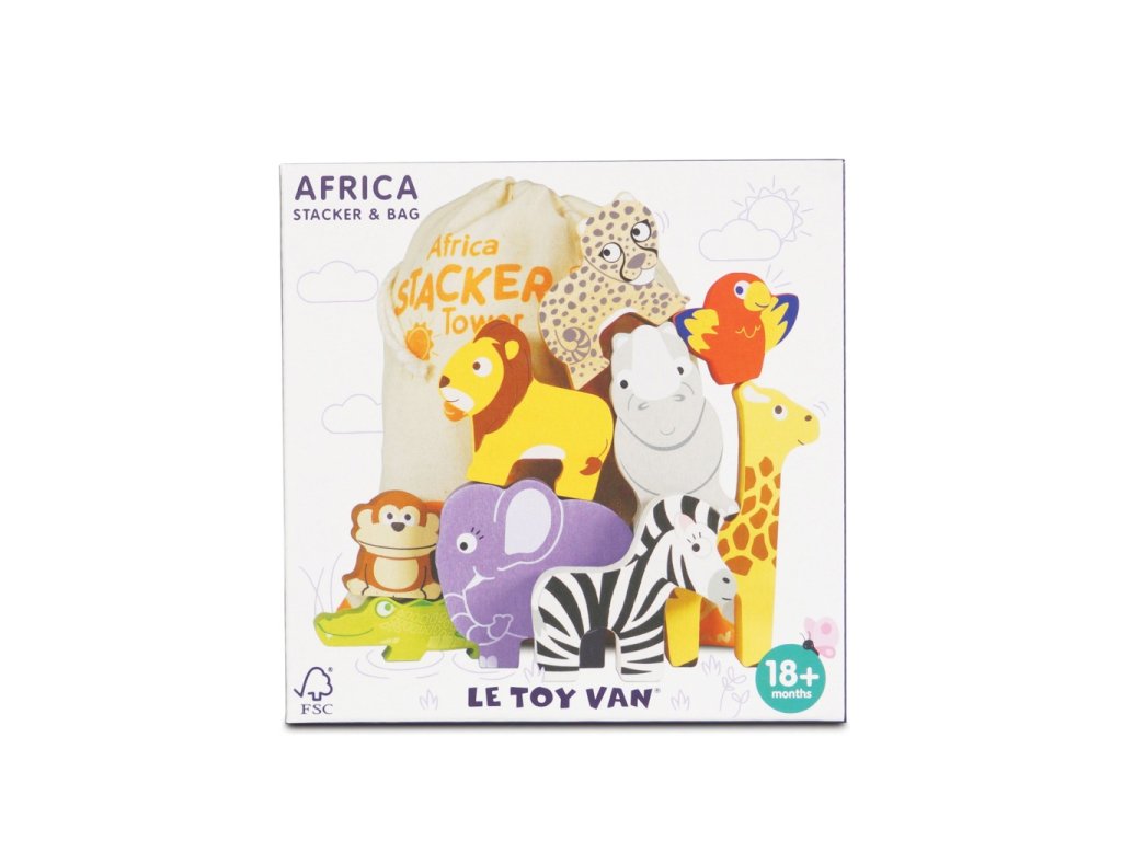 Následujte volání divočiny s touto divokou hračkou v motivu Afriky. Mladí milovníci přírody budou touto udržitelnou hračkou nadšení – postavte co nejvyšší věž a pak se dívejte, jak padá. Zábavné vzdělávání formou hry. Malováno veselými tóny za použití netoxických barev. Tato veselá sada se skládá z devíti dřevěných zvířátek, která jsou velká tak akorát pro dětské ruce. Najdete zde žirafu, lva, slona, zebru, opici, nosorožce, geparda, krokodýla a také papouška. Naučí děti o divokých zvířatech, zároveň podporuje v trénování zručnosti a jemné motoriky. Perfektní hračka na cesty, je zabalená v bavlněném pytlíku. Tato hračka i její obal je 100% bez plastu. Krásná kolekce ispiruje děti k učení formou hry. Designováno zkušenými řemeslníky za použití etických praktik a udržitelných materiálů – dlouhá léta kouzelného hraní, které je také laskavé k naší planetě. Hlavní vlastnosti: textilní pytlík, 9 figurek zvířatzaoblené hranyvyrobeno eticky z udržitelného dřevatestováno dle nejpřísnějších standardůmalováno netoxickými barvami na bázi vodyinspiruje k představivé hře Petilou kolekce: Kolekce pro nemluvňata a batolata od Le Toy Van obsahuje hlavně hmatové hračky, které mají nejmenším posloužit také jako učební prostředky. Kolekce je inspirována přírodou kolem nás a je navržena tak, aby rozvíjela smysly dětí pomocí rozdílných zvuků, textur, tvarů a hmotností. Děti tak od malička zapojí všechny své smysly. V kolekci najdete například skládačky, vkládačky, chodítka, … Značka a certifikát FSC® (Forest Stewardship Council) zaručuje, že dřevo, ze kterého byl produkt vyroben, nebylo vytěženo nelegálně a pochází z lesů obhospodařovaných šetrným či přírodě blízkým způsobem, ve kterém jsou dodržovány přísné environmentální a sociální požadavky. Značka FSC® na výrobku znamená, že svým nákupem pomáháte chránit lesy a podporujete šetrné, odpovědné či přírodě blízké hospodaření, díky kterému jsou naše lesy stabilnější, zdravější, mají přirozenou druhovou skladbu a lépe odolávají negativním následkům klimatických změn.