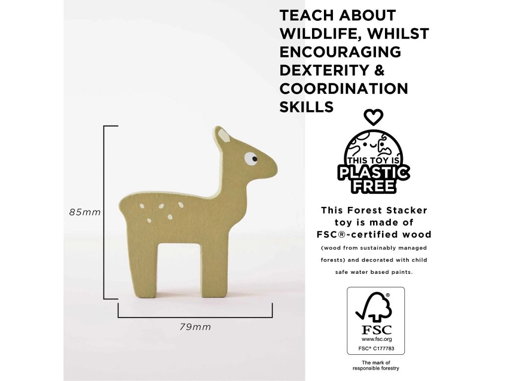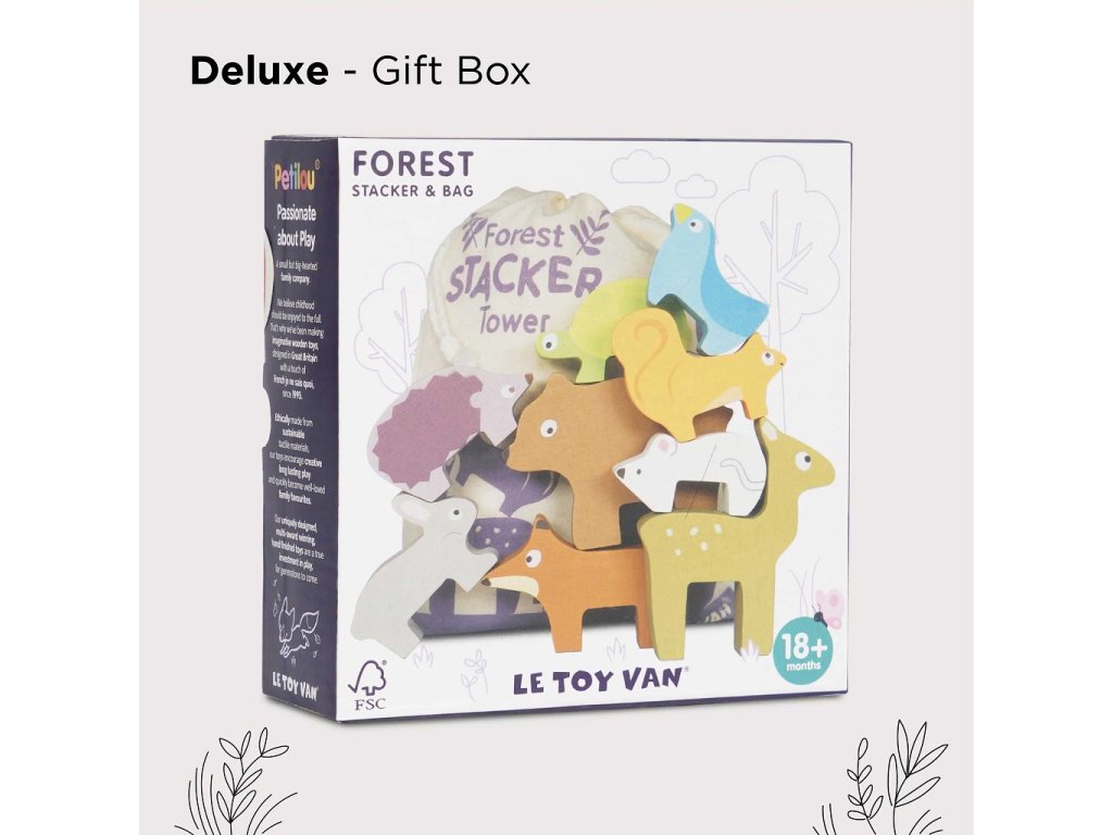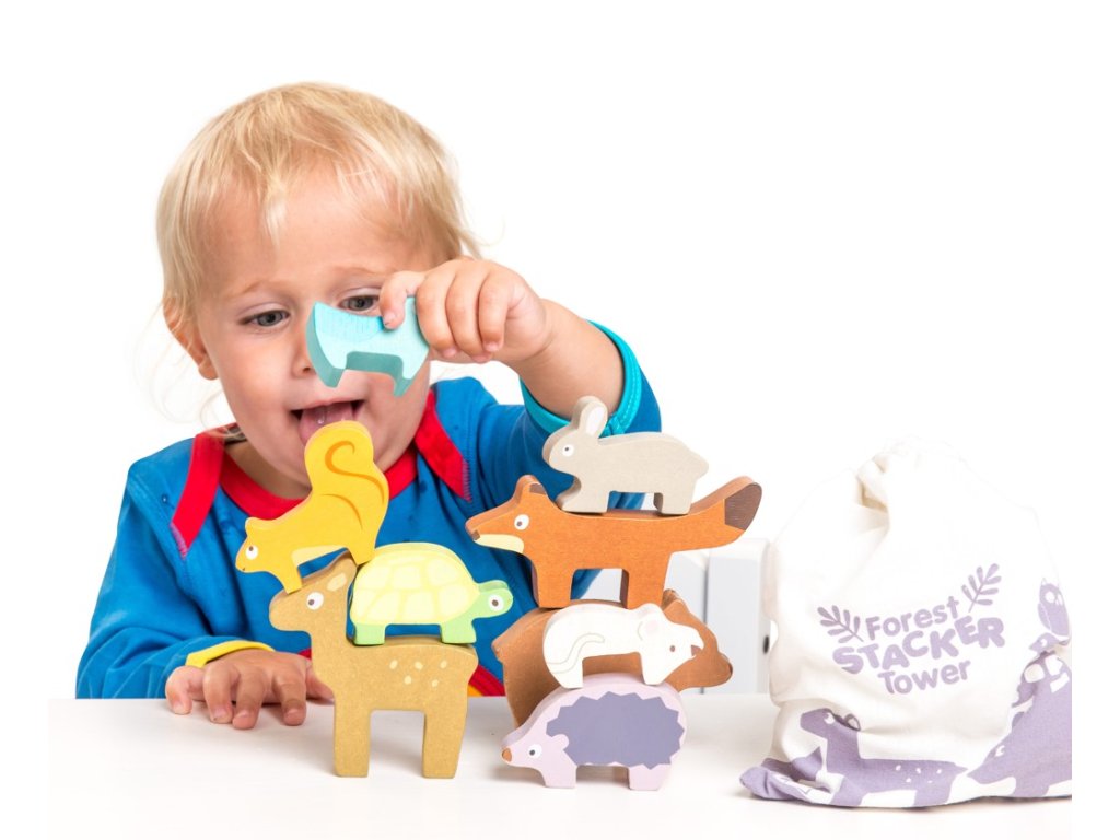 Skládací věž lesních zvířátek je ideální hračkou pro nejmenší děti. Figurky zvířátek budou skládat na sebe, cílem je postavit co nejvyšší věž, ta však může kdykoliv spadnout… Dílky zvířátek jsou velké tak akorát pro dětské ruce. V balení najdete lišku, zajíce, ježka, medvěda, myš, želvu, veverku, kolouška a ptáčka. Předejte dětem vědomosti o přírodě, zároveň si s nimi procvičte jemnou motoriku. Hračka je zabalena v bavlněném pytlíku, je tedy perfektní také na cesty. Hračka pomůže s rozvojem zručnosti a koordinace ruka-oko. Vyrobeno z udržitelného dřeva, malováno netoxickými barvami na bázi vody. Hračky s účelemVšechny hračky firmy Le Toy Van jsou vyrobeny s cílem – aby dlouho vydržely. Designovány s láskou zkušenými řemeslníky za použití etických praktik a udržitelných materiálů, které jsou laskavější k naší planetě. Hlavní vlastnosti: vyrobeno eticky z udržitelného FSC dřevatestováno dle nejpřísnějších standardůmalováno netoxickými barvami na bázi vodyinspiruje k představivé hřerozvíjí kognitivní dovednosti Ocenění hračky:Good Toy Guide Recommended Petilou kolekce: Kolekce pro nemluvňata a batolata od Le Toy Van obsahuje hlavně hmatové hračky, které mají nejmenším posloužit také jako učební prostředky. Kolekce je inspirována přírodou kolem nás a je navržena tak, aby rozvíjela smysly dětí pomocí rozdílných zvuků, textur, tvarů a hmotností. Děti tak od malička zapojí všechny své smysly. V kolekci najdete například skládačky, vkládačky, chodítka, … Značka a certifikát FSC® (Forest Stewardship Council) zaručuje, že dřevo, ze kterého byl produkt vyroben, nebylo vytěženo nelegálně a pochází z lesů obhospodařovaných šetrným či přírodě blízkým způsobem, ve kterém jsou dodržovány přísné environmentální a sociální požadavky. Značka FSC® na výrobku znamená, že svým nákupem pomáháte chránit lesy a podporujete šetrné, odpovědné či přírodě blízké hospodaření, díky kterému jsou naše lesy stabilnější, zdravější, mají přirozenou druhovou skladbu a lépe odolávají negativním následkům klimatických změn.