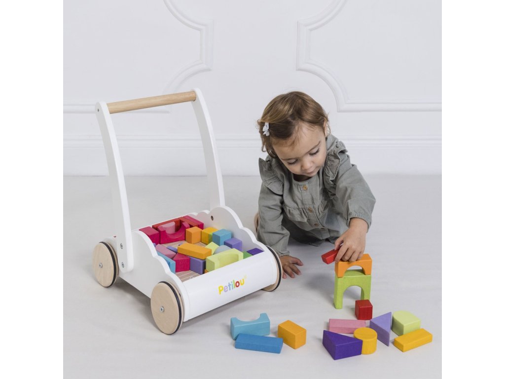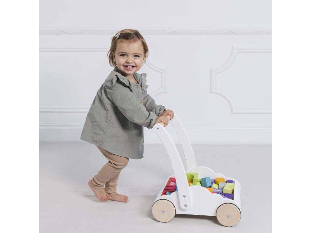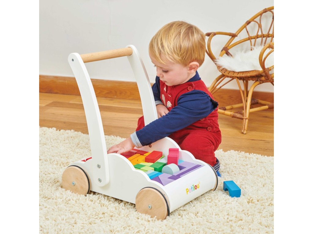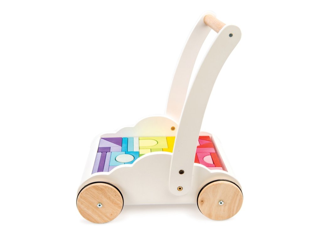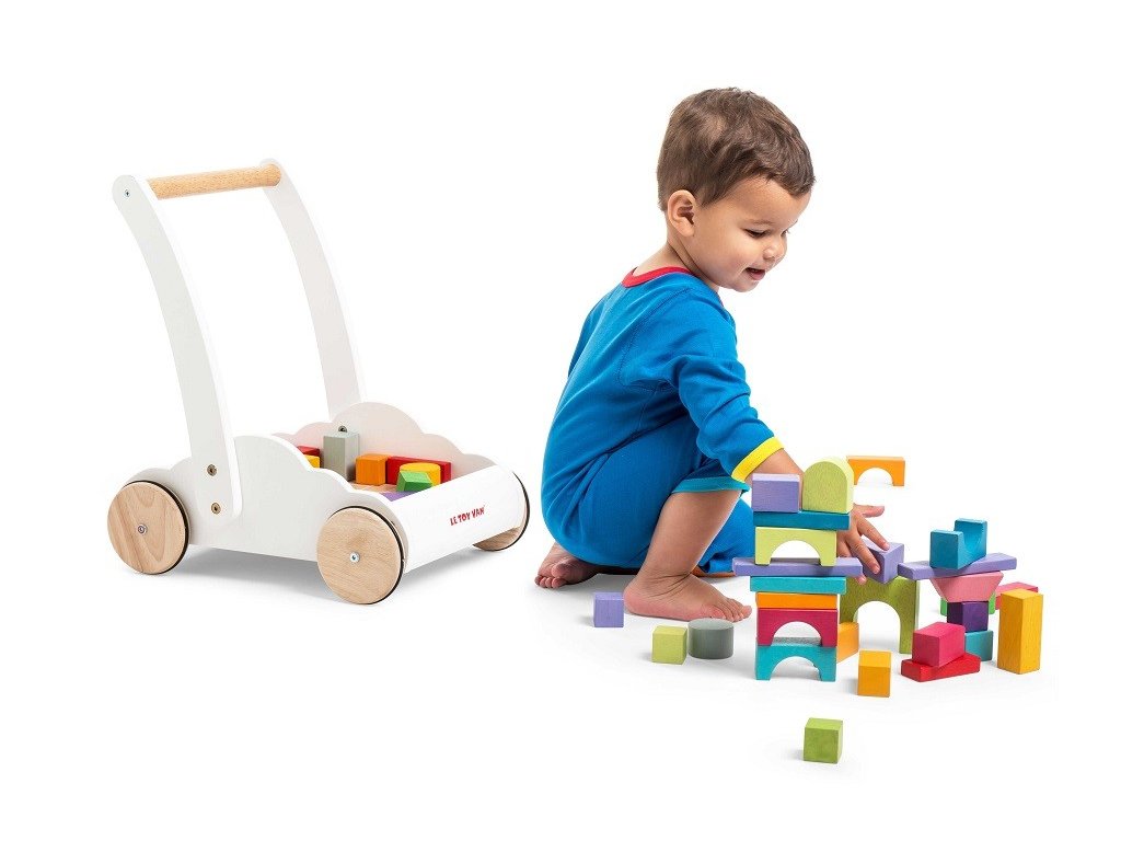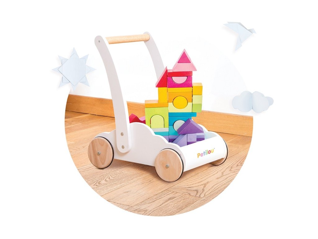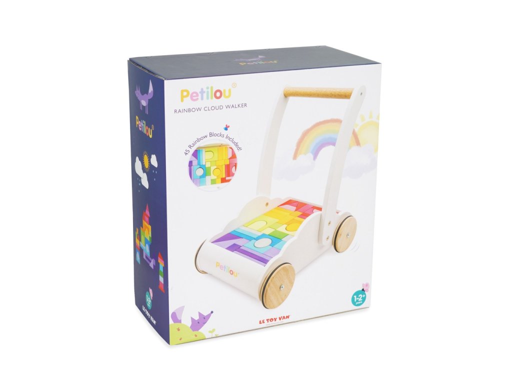 Perfektní hračka pro batolata, která se učí chodit. Unikátní chodítko ve tvaru mráčku je vybaveno 45 kostkami z kaučukového dřeva, ty jsou malovány barvami duhy. Vozík jako chodítko děti podpoří fyzicky i mentálně. Při tréninku chůze dodá sebejistotu a stabilitu. Tradiční duhové kostky různých tvarů zase pomohou s rozvojem prostorové představivosti, zručnosti a motoriky. Hračky s účelemVšechny hračky firmy Le Toy Van jsou vyrobeny s cílem – aby dlouho vydržely. Designovány s láskou zkušenými řemeslníky za použití etických praktik a udržitelných materiálů, které jsou laskavější k naší planetě. Hlavní vlastnosti: chodítko s 45 kostkamivyrobeno eticky z udržitelného dřevatestováno dle nejpřísnějších standardůmalováno netoxickými barvami na bázi vodyinspiruje k představivé hřerozvíjí kognitivní dovednosti Ocenění hračky:Good Toy Guide RecommendedJunior Design Silver Award 2018 Petilou kolekce: Kolekce pro nemluvňata a batolata od Le Toy Van obsahuje hlavně hmatové hračky, které mají nejmenším posloužit také jako učební prostředky. Kolekce je inspirována přírodou kolem nás a je navržena tak, aby rozvíjela smysly dětí pomocí rozdílných zvuků, textur, tvarů a hmotností. Děti tak od malička zapojí všechny své smysly. V kolekci najdete například skládačky, vkládačky, chodítka, …