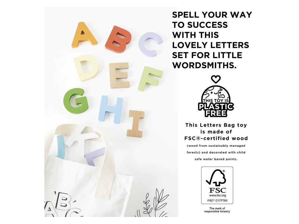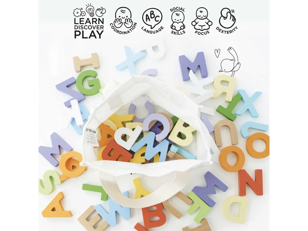 Vyhláskujte si cestu k úspěchu s touto krásnou sadou písmenek! 60 dílků duhových barev malým slovíčkářům pomáhají se naučit abecedu a utvářet jednoduchá slova. Sada obsahuje také plátěnou tašku, jenž slouží pro bezpečné uložení písmen na konci rušného hraní. Dílky jsou vyrobeny ze dřeva s certifikací FSC® (dřevo z lesů obhospodařovaných udržitelným způsobem) a ozdobeny barvami na vodní bázi bezpečnými pro děti. Hračky s účelemVšechny hračky firmy Le Toy Van jsou vyrobeny s cílem – aby dlouho vydržely. Designovány s láskou zkušenými řemeslníky za použití etických praktik a udržitelných materiálů, které jsou laskavější k naší planetě. Hlavní vlastnosti: vyrobeno eticky z udržitelného dřevatestováno dle nejpřísnějších standardůmalováno netoxickými barvami na bázi vodyobsahuje 60 písmen a bavlněnou taškuskvělá didaktická pomůcka Petilou kolekce: Kolekce pro nemluvňata a batolata od Le Toy Van obsahuje hlavně hmatové hračky, které mají nejmenším posloužit také jako učební prostředky. Kolekce je inspirována přírodou kolem nás a je navržena tak, aby rozvíjela smysly dětí pomocí rozdílných zvuků, textur, tvarů a hmotností. Děti tak od malička zapojí všechny své smysly. V kolekci najdete například skládačky, vkládačky, chodítka, … Značka a certifikát FSC® (Forest Stewardship Council) zaručuje, že dřevo, ze kterého byl produkt vyroben, nebylo vytěženo nelegálně a pochází z lesů obhospodařovaných šetrným či přírodě blízkým způsobem, ve kterém jsou dodržovány přísné environmentální a sociální požadavky. Značka FSC® na výrobku znamená, že svým nákupem pomáháte chránit lesy a podporujete šetrné, odpovědné či přírodě blízké hospodaření, díky kterému jsou naše lesy stabilnější, zdravější, mají přirozenou druhovou skladbu a lépe odolávají negativním následkům klimatických změn.