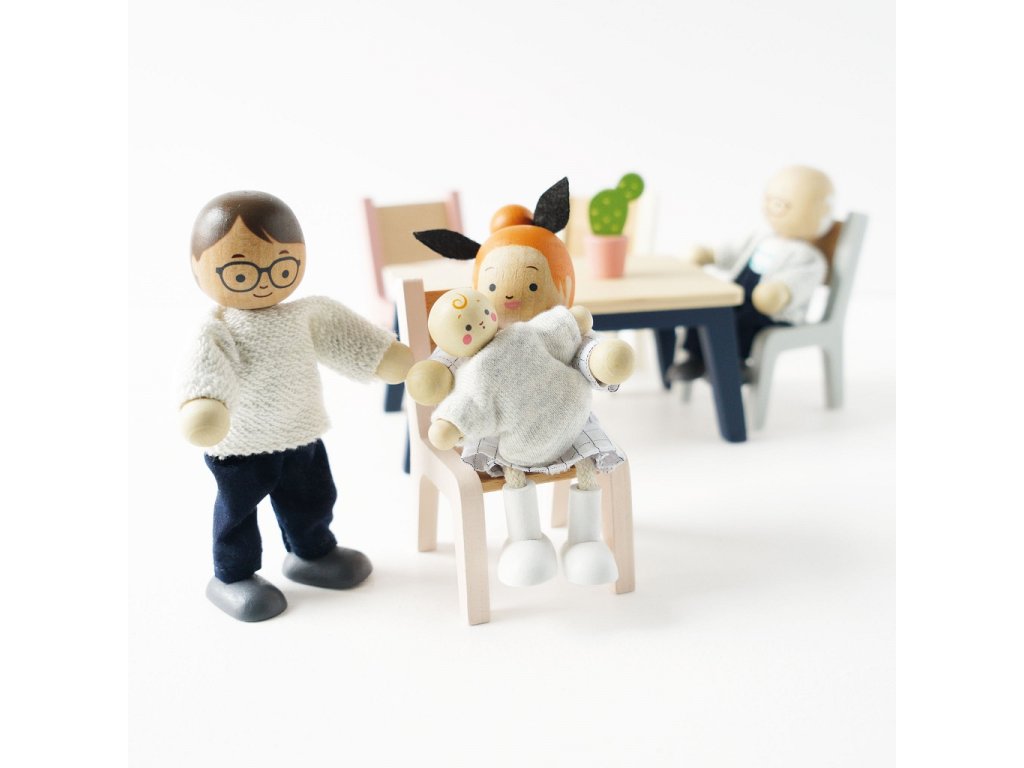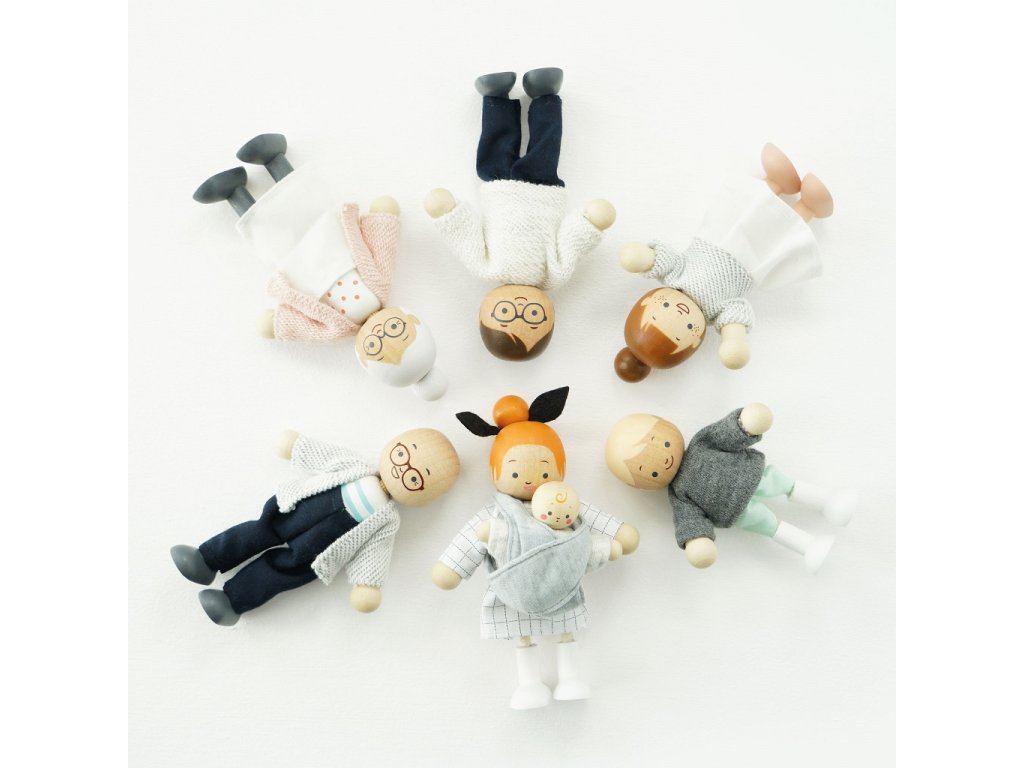 Šťastná rodina! Tato sada sedmi dřevěných panenek je připravena a čeká na rodinná dobrodružství. Postavičky jsou oblečeny do krásných, ručně šitých outfitů. Jejich velikost je přizpůsobena pro všechny domečky a produkty značky Le Toy Van. Ideální hračka pro vzdělávání a inspiraci, která podporuje sociální hru a zdokonaluje jemné motorické dovednosti. Produkt se může lišit v barevných detailech. Hračky s účelemVšechny hračky firmy Le Toy Van jsou vyrobeny s cílem – aby dlouho vydržely. Designovány s láskou zkušenými řemeslníky za použití etických praktik a udržitelných materiálů, které jsou laskavější k naší planetě. Hlavní vlastnosti: panenky mají ručně šité oblečení, vlněné vlasy a pohyblivé končetinyodborně a láskyplně vyrobeno z udržitelných materiálůdřevo certifikované FSC z udržitelných zdrojůdůkladně testováno, aby splňovalo nejvyšší bezpečnostní standardyzdobeno netoxickými barvami na vodní bázihračka pomáhá rozvíjet komunikaci, sociální dovednosti a kreativitu Značka a certifikát FSC® (Forest Stewardship Council) zaručuje, že dřevo, ze kterého byl produkt vyroben, nebylo vytěženo nelegálně a pochází z lesů obhospodařovaných šetrným či přírodě blízkým způsobem, ve kterém jsou dodržovány přísné environmentální a sociální požadavky. Značka FSC® na výrobku znamená, že svým nákupem pomáháte chránit lesy a podporujete šetrné, odpovědné či přírodě blízké hospodaření, díky kterému jsou naše lesy stabilnější, zdravější, mají přirozenou druhovou skladbu a lépe odolávají negativním následkům klimatických změn.