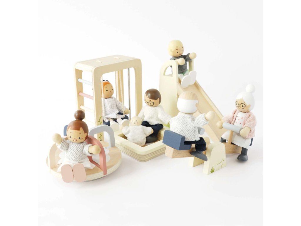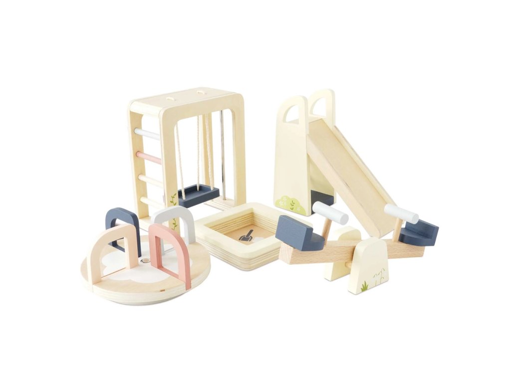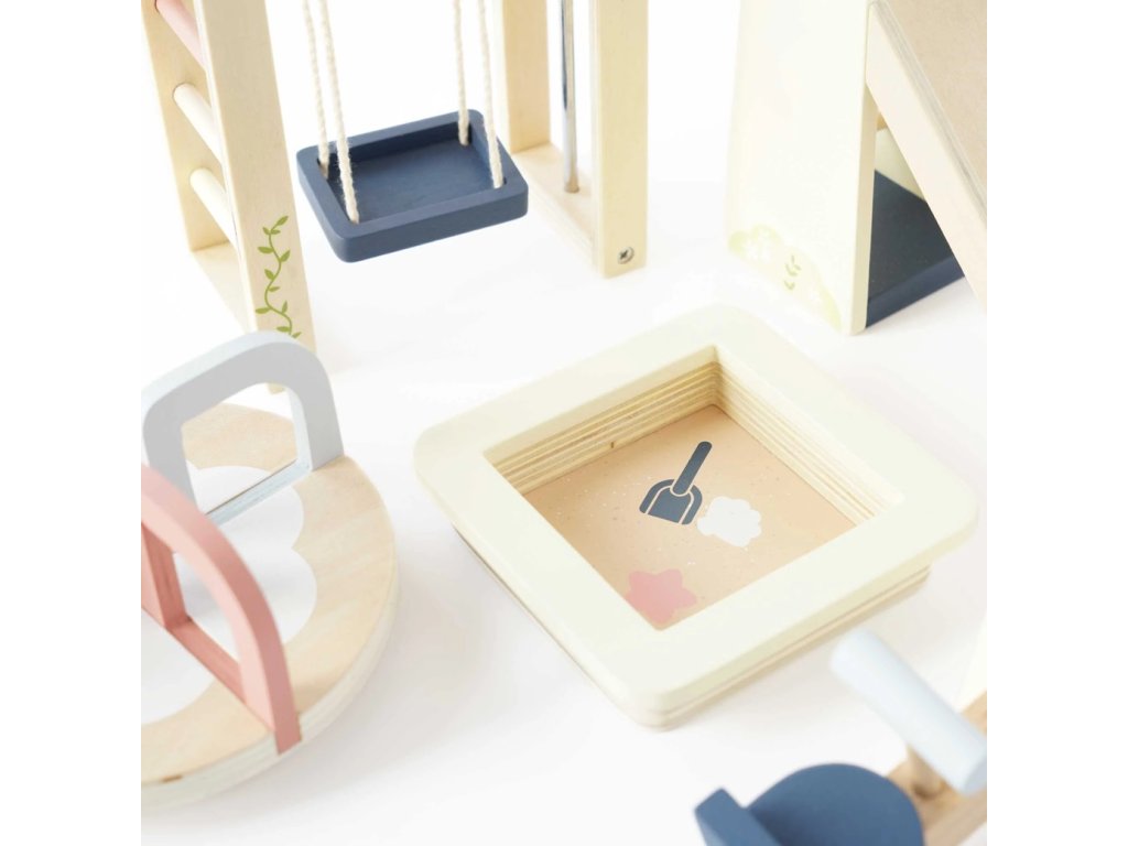 Kdo by si nechtěl pohrát venku na hřišti? Tato krásná sada, vybavení pro venkovní hřiště, je ideálním doplňkem k domečkům pro panenky. Pomocí zábavných atrakcí mohou holčičky navrhnout vnitřní hernu nebo vytvořit hřiště pro panenky venku. Sada obsahuje 2 houpačky, točící se kolotoč, skluzavku i pískoviště, je vyrobena z udržitelného dřeva s certifikací FSC a neobsahuje plasty. Hračky s účelemVšechny hračky firmy Le Toy Van jsou vyrobeny s cílem – aby dlouho vydržely. Designovány s láskou zkušenými řemeslníky za použití etických praktik a udržitelných materiálů, které jsou laskavější k naší planetě. Hlavní vlastnosti: obsahuje 5 unikátních doplňkůbezpečnost testována na věk 3 let +vyrobeno eticky z udržitelného dřeva s certifikací FSCtestováno dle nejpřísnějších standardůhračka bez plastumalováno netoxickými barvami na bázi vodyinspiruje ke kreativní a představivé hřekompatibilní s panenkami "postavičky moje rodinka" Značka a certifikát FSC® (Forest Stewardship Council) zaručuje, že dřevo, ze kterého byl produkt vyroben, nebylo vytěženo nelegálně a pochází z lesů obhospodařovaných šetrným či přírodě blízkým způsobem, ve kterém jsou dodržovány přísné environmentální a sociální požadavky. Značka FSC® na výrobku znamená, že svým nákupem pomáháte chránit lesy a podporujete šetrné, odpovědné či přírodě blízké hospodaření, díky kterému jsou naše lesy stabilnější, zdravější, mají přirozenou druhovou skladbu a lépe odolávají negativním následkům klimatických změn.
