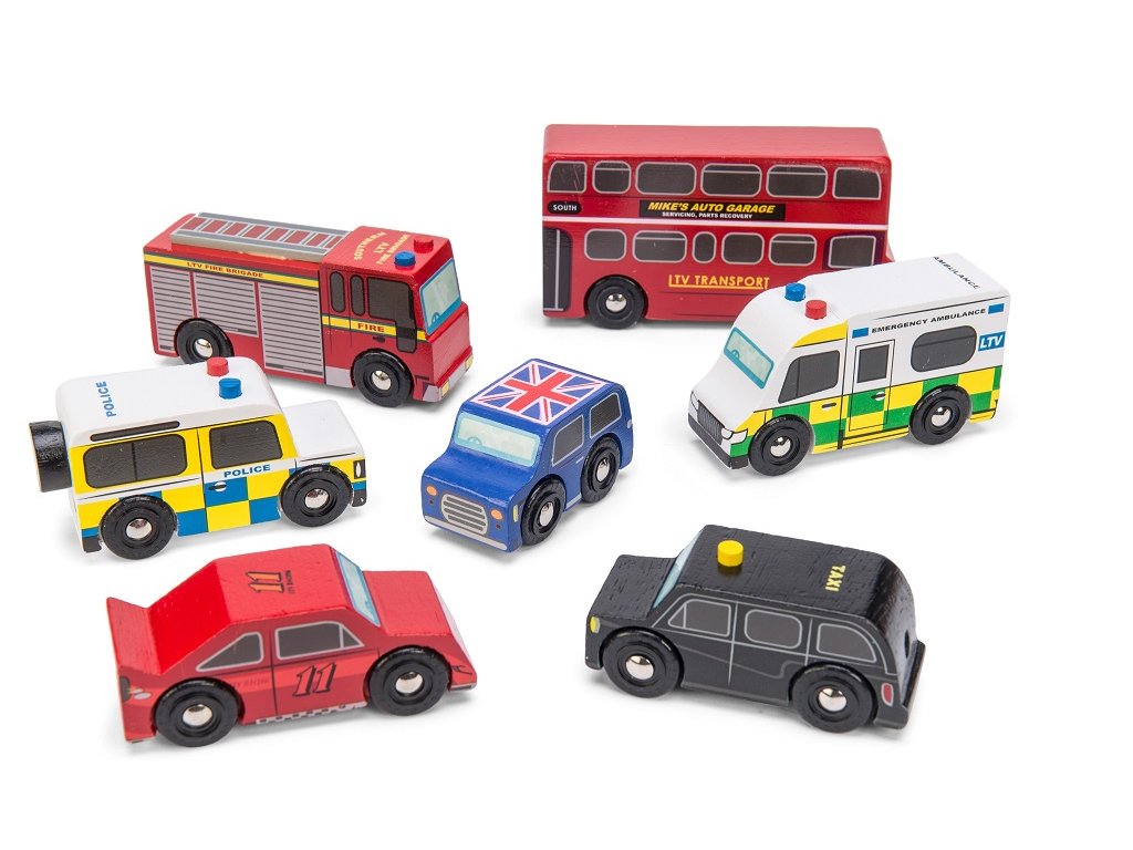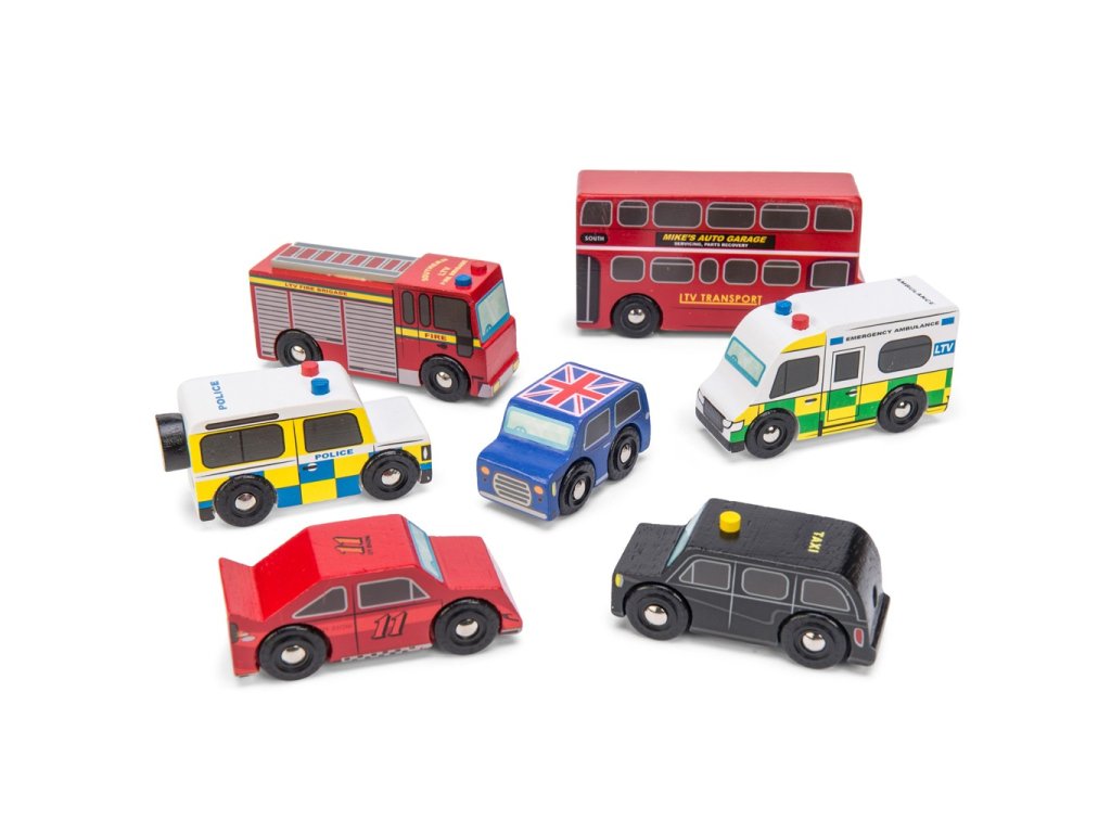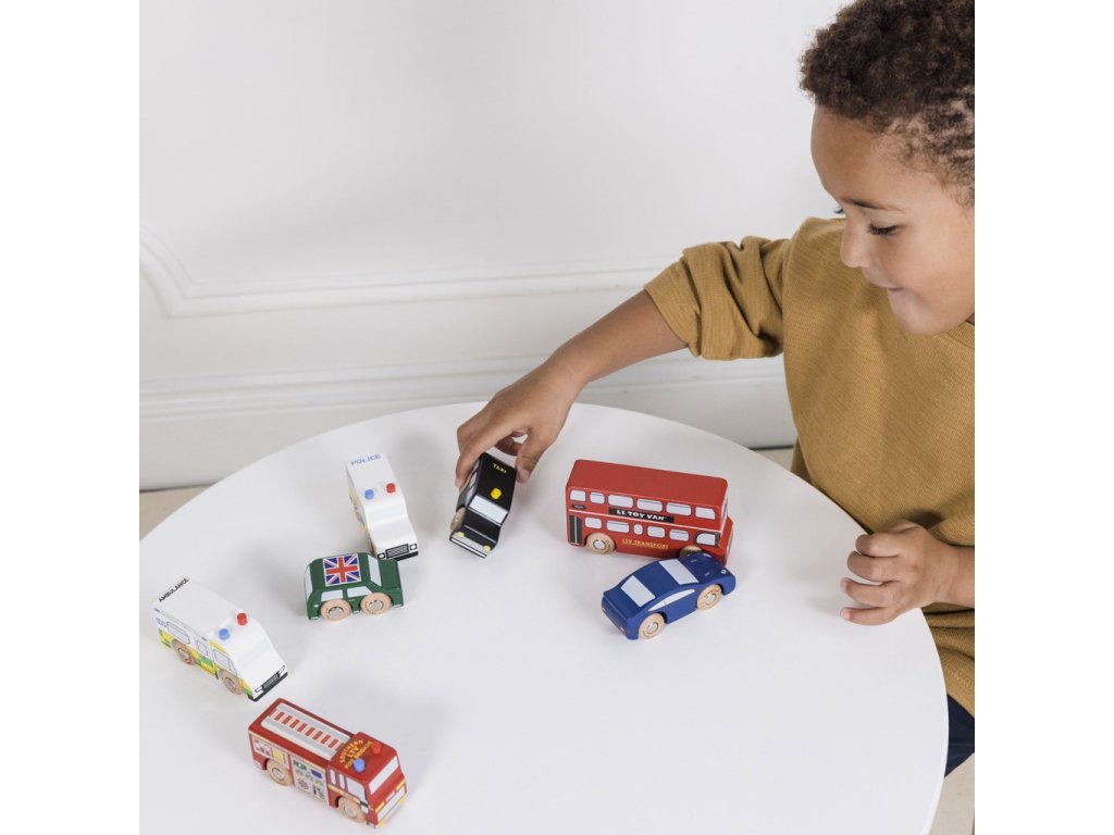 Těchto sedm dřevěných ikonických autíček z Londýna děti jistě inspiruje k představivé hře. Vozidla jsou vyrobena z odolného a udržitelného kaučukového dřeva, děti si při hře mohou vytvářet vlastní příběhy, také si potrénují zručnost a jemnou motoriku. V balení dvoupatrový autobus, černý taxík, hasičské auto, sanitka a dvě osobní auta. Kompatibilní s dřevěnými garážemi a vláčkodráhrami Le Toy Van, také s vláčkodráhami jiných značek. Hračky s účelemVšechny hračky firmy Le Toy Van jsou vyrobeny s cílem – aby dlouho vydržely. Designovány s láskou zkušenými řemeslníky za použití etických praktik a udržitelných materiálů, které jsou laskavější k naší planetě. Hlavní vlastnosti: vyrobeno eticky z udržitelného dřevatestováno dle nejpřísnějších standardůmalováno netoxickými barvami na bázi vodyinspiruje k představivé hřerozvíjí kognitivní dovednosti Auta & stavby: Stavební a motorická kolekce Le Toy Van, která vyhrála mnoho ocenění. Přesněji prozatím přes 15 ocenění za představivá auta a stavební hračky. Podporují dětskou fantazii, jsou ideální k představivé hře, rozvíjí kreativitu a hravě zlepšují dětskou koordinaci ruka‑oko. Značka a certifikát FSC® (Forest Stewardship Council) zaručuje, že dřevo, ze kterého byl produkt vyroben, nebylo vytěženo nelegálně a pochází z lesů obhospodařovaných šetrným či přírodě blízkým způsobem, ve kterém jsou dodržovány přísné environmentální a sociální požadavky. Značka FSC® na výrobku znamená, že svým nákupem pomáháte chránit lesy a podporujete šetrné, odpovědné či přírodě blízké hospodaření, díky kterému jsou naše lesy stabilnější, zdravější, mají přirozenou druhovou skladbu a lépe odolávají negativním následkům klimatických změn.