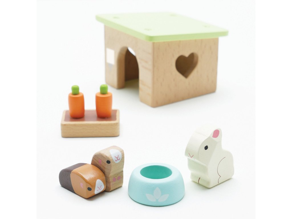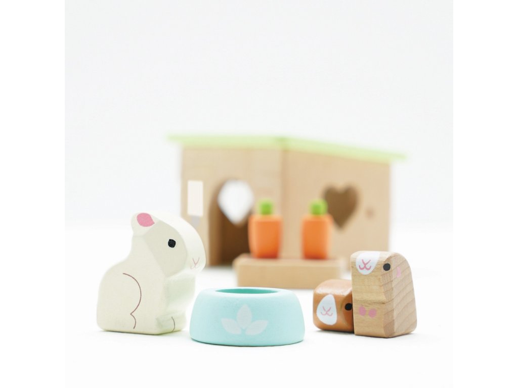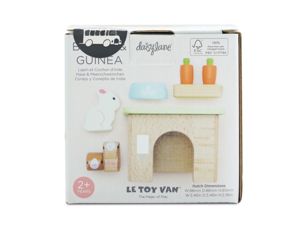 I domácí mazlíčci potřebují domov a důkladnou péči! S touto rozkošnou dřevěnou sadou domácích mazlíčků na vás čekají mnohá dobrodružství při hraní rolí - je doplněna o králíka, dvě morčátka, boudu, misku a báječné mrkvové svačinky! Hlavní vlastnosti: inspiruje k sociální hře, rozvíjí komunikační dovednostivyrobeno eticky z udržitelného FSC dřevadekorováno pomocí netoxických barev na vodní bázi Daisylane kolekce: Prestižní kolekce domečků pro panenky a doplňků firmy Le Toy Van. Před více než 25 lety zakladatel Georges navrhl svůj úplně první domeček pro panenky, stavební kámen této firmy. Vyrobeno eticky z udržitelných materiálů, dřevěné domečky pro panenky Daisylane jsou jedinečné a nebudou dětskou představivost držet zpátky. Rodinné dědictví, opravdová investice do hraní. Značka a certifikát FSC® (Forest Stewardship Council) zaručuje, že dřevo, ze kterého byl produkt vyroben, nebylo vytěženo nelegálně a pochází z lesů obhospodařovaných šetrným či přírodě blízkým způsobem, ve kterém jsou dodržovány přísné environmentální a sociální požadavky. Značka FSC® na výrobku znamená, že svým nákupem pomáháte chránit lesy a podporujete šetrné, odpovědné či přírodě blízké hospodaření, díky kterému jsou naše lesy stabilnější, zdravější, mají přirozenou druhovou skladbu a lépe odolávají negativním následkům klimatických změn.