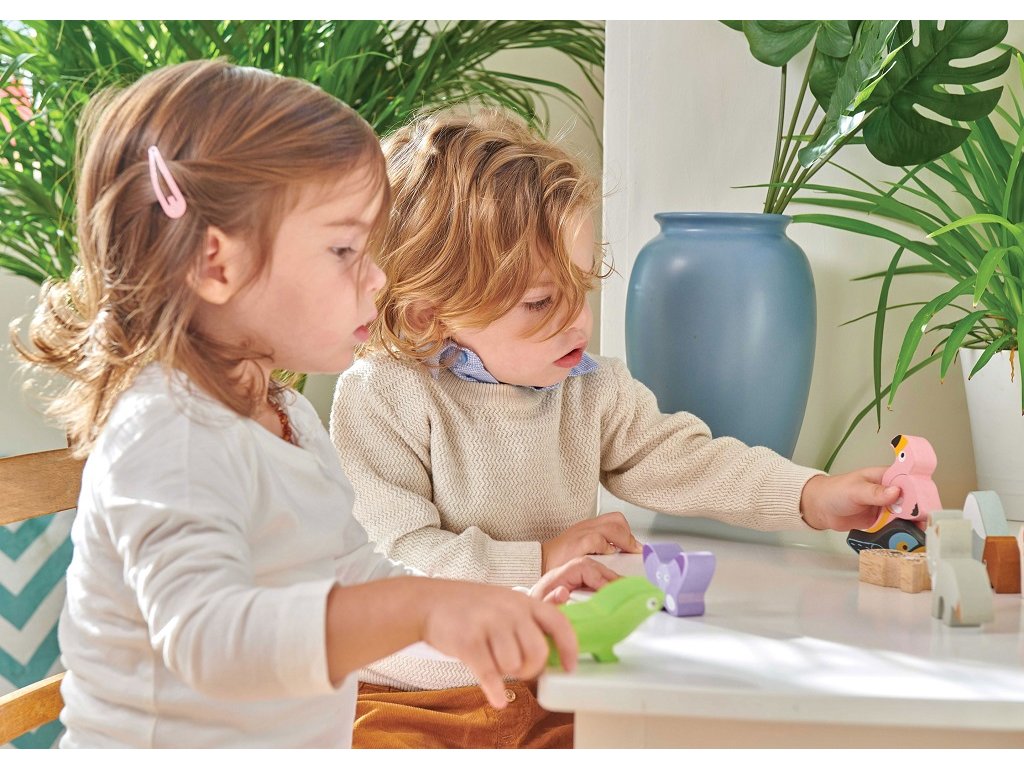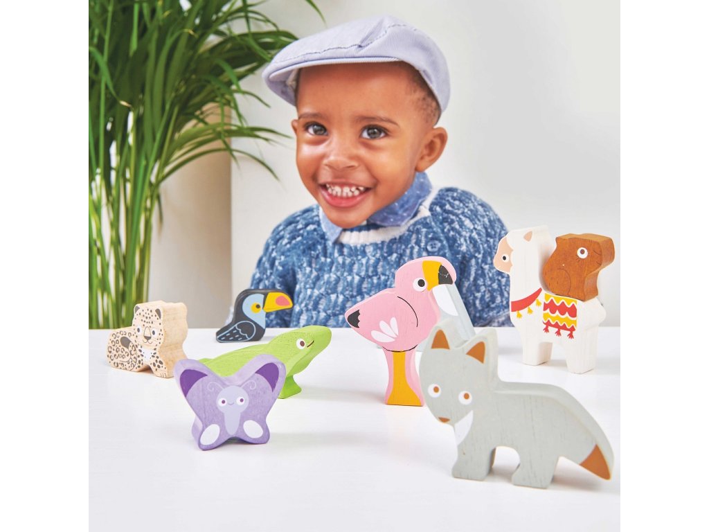 S touto hračkou děti čeká velké dobrodružství! Senzorická skládačka se zvířaty z pohoří And je vyrobena udržitelně, z pevného kaučukového dřeva, malována netoxickými barvami, které se neloupou. V bavlněném pytlíku na šňůrku najdete osm dílků zvířat (lama, lenochod, plameňák, ještěrka, tukan, motýl...) a jeden dílek zasněžené hory. Všechny dílky jsou velikostně tak akorát pro dětské ruce. Děti si při hře procvičí jemnou motoriku a zručnost. Hračka je bez obsahu plastu a je také vhodná na cesty. Hračky s účelemVšechny hračky firmy Le Toy Van jsou vyrobeny s cílem – aby dlouho vydržely. Designovány s láskou zkušenými řemeslníky za použití etických praktik a udržitelných materiálů, které jsou laskavější k naší planetě. Hlavní vlastnosti: vyrobeno eticky z udržitelného dřevatestováno dle nejpřísnějších standardůmalováno netoxickými barvami na bázi vodyinspiruje k představivé hřerozvíjí kognitivní dovednostihračka bez obsahu plastubavlněný pytlík a 9 dílků Petilou kolekce: Kolekce pro nemluvňata a batolata od Le Toy Van obsahuje hlavně hmatové hračky, které mají nejmenším posloužit také jako učební prostředky. Kolekce je inspirována přírodou kolem nás a je navržena tak, aby rozvíjela smysly dětí pomocí rozdílných zvuků, textur, tvarů a hmotností. Děti tak od malička zapojí všechny své smysly. V kolekci najdete například skládačky, vkládačky, chodítka, … Značka a certifikát FSC® (Forest Stewardship Council) zaručuje, že dřevo, ze kterého byl produkt vyroben, nebylo vytěženo nelegálně a pochází z lesů obhospodařovaných šetrným či přírodě blízkým způsobem, ve kterém jsou dodržovány přísné environmentální a sociální požadavky. Značka FSC® na výrobku znamená, že svým nákupem pomáháte chránit lesy a podporujete šetrné, odpovědné či přírodě blízké hospodaření, díky kterému jsou naše lesy stabilnější, zdravější, mají přirozenou druhovou skladbu a lépe odolávají negativním následkům klimatických změn.